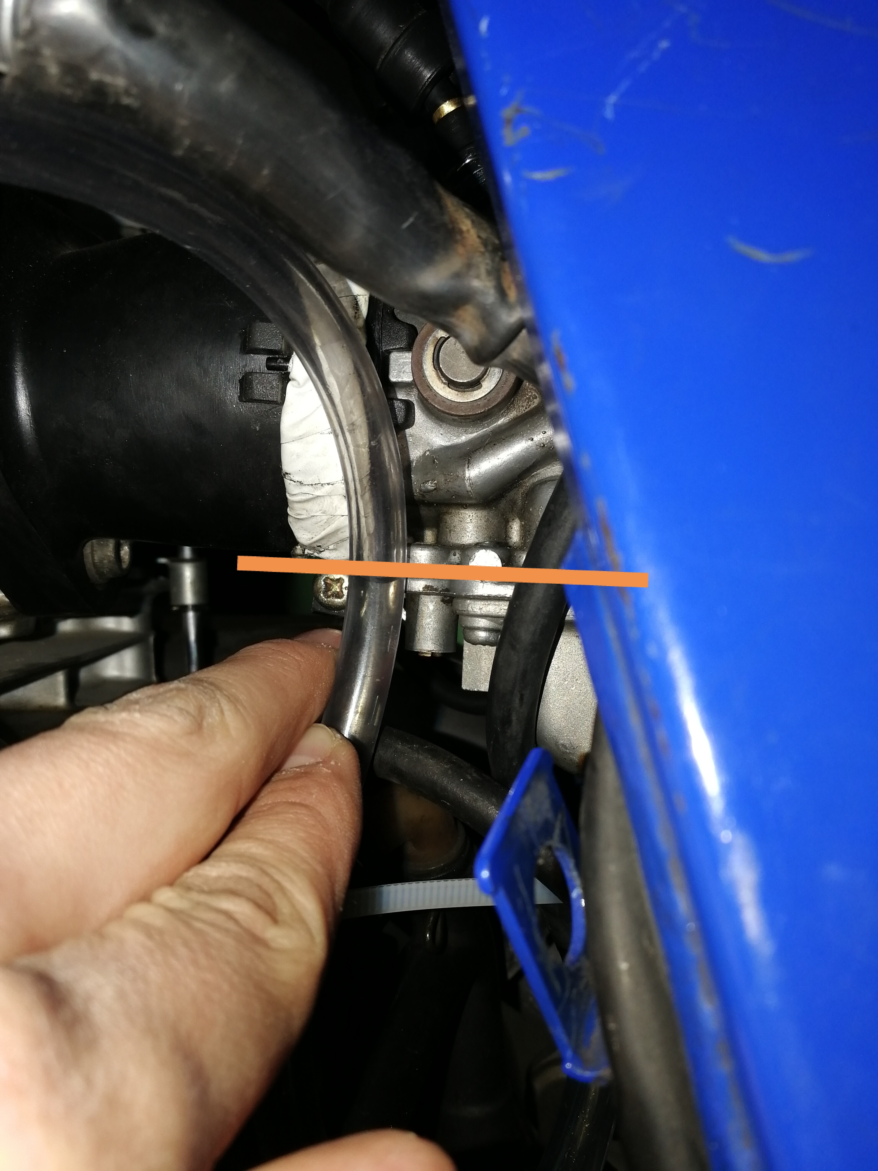 Nein, ich meine wenn ich den Vergaser so platziere damit er gerade auf dem Tisch steht und ihn dan mit Benzin befülle. So könnte ich die "Versuchsbedingungen" besser kontrollieren als im Eingebauten Zustand.