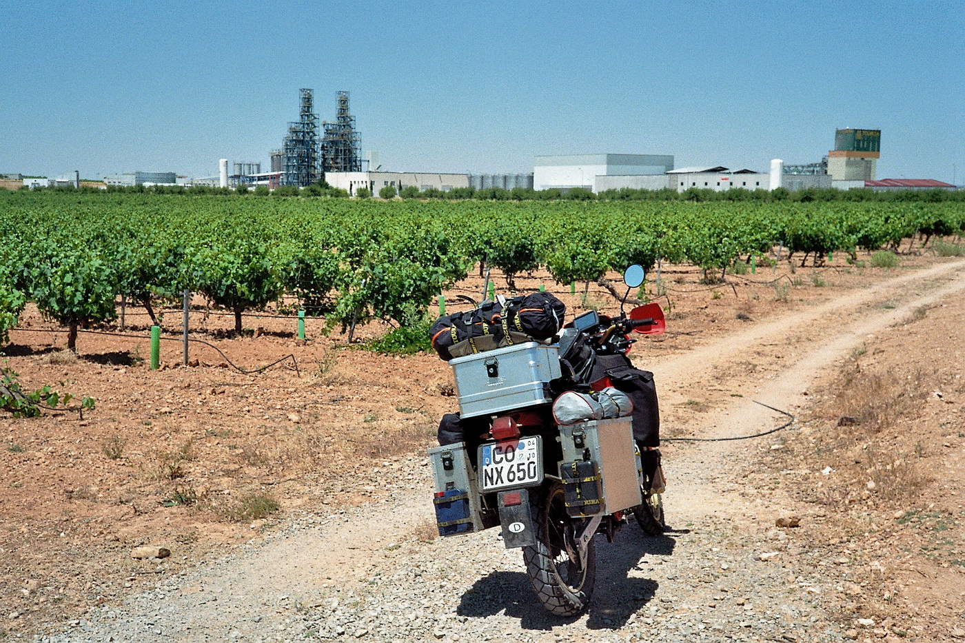 Während ich mein Zelt aufbaue, bäckt mir Alvaro ein Weißbrot auf. Brot und Calamares aus der Dose munden köstlich! Abends ziehe ich bei Rotwein eine erste Zwischenbilanz: Binnen vier Tagen bin ich 2.350 km mit meiner Domi gefahren. Sie hat rund 4½ l Sprit (auf 100 km) und etwa 0,4 l Öl (auf 1.000 km) verbraucht. Nachts schrecken mich heftige Wadenkrämpfe auf. Mist!