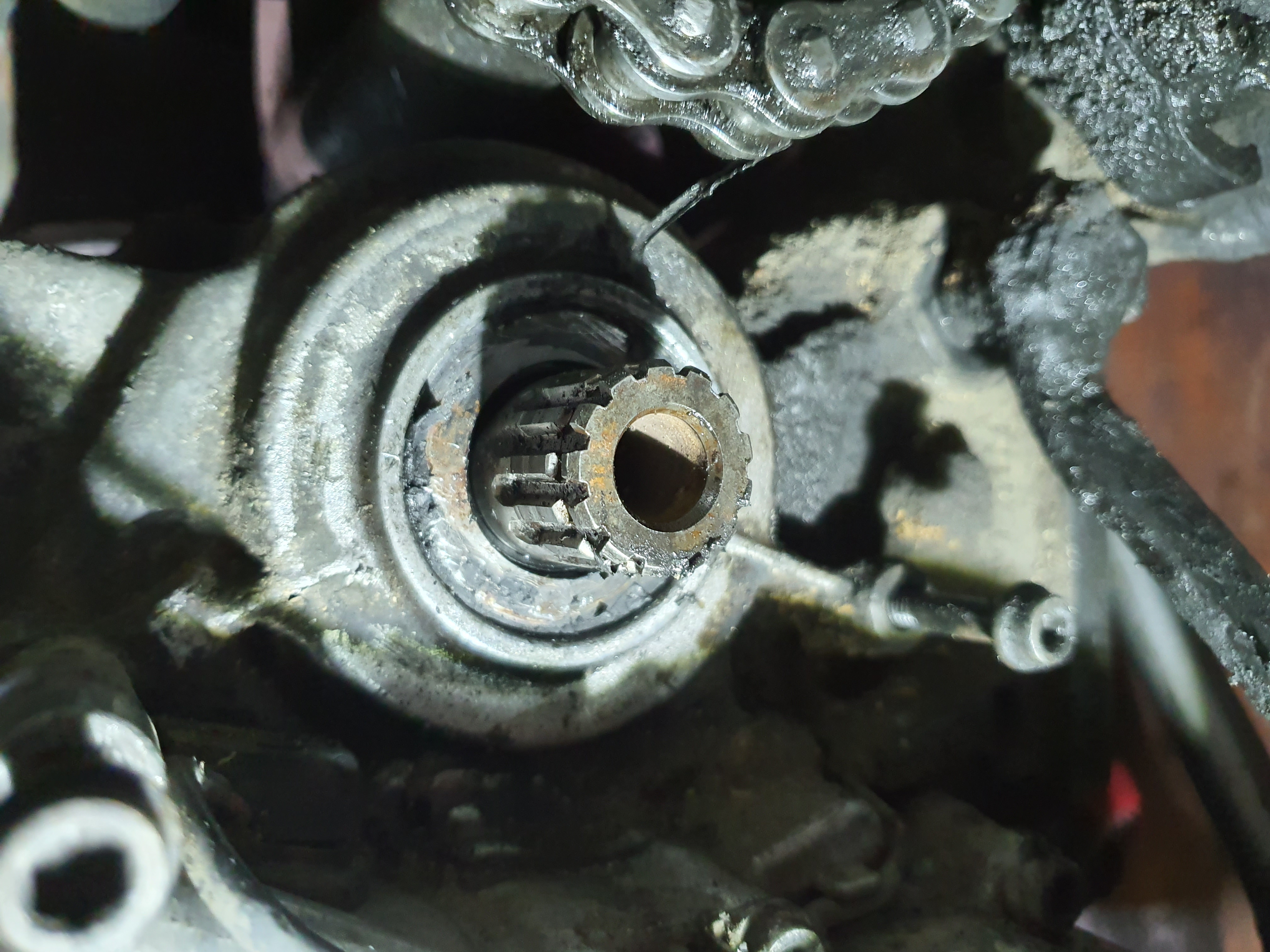 Jetzt habe ich (mit meinen 2 linken händen ((Bin Informatiker, kein Schrauber)) schon einmal das Ritzel abgemacht und wollte den Simmerring ziehen.
