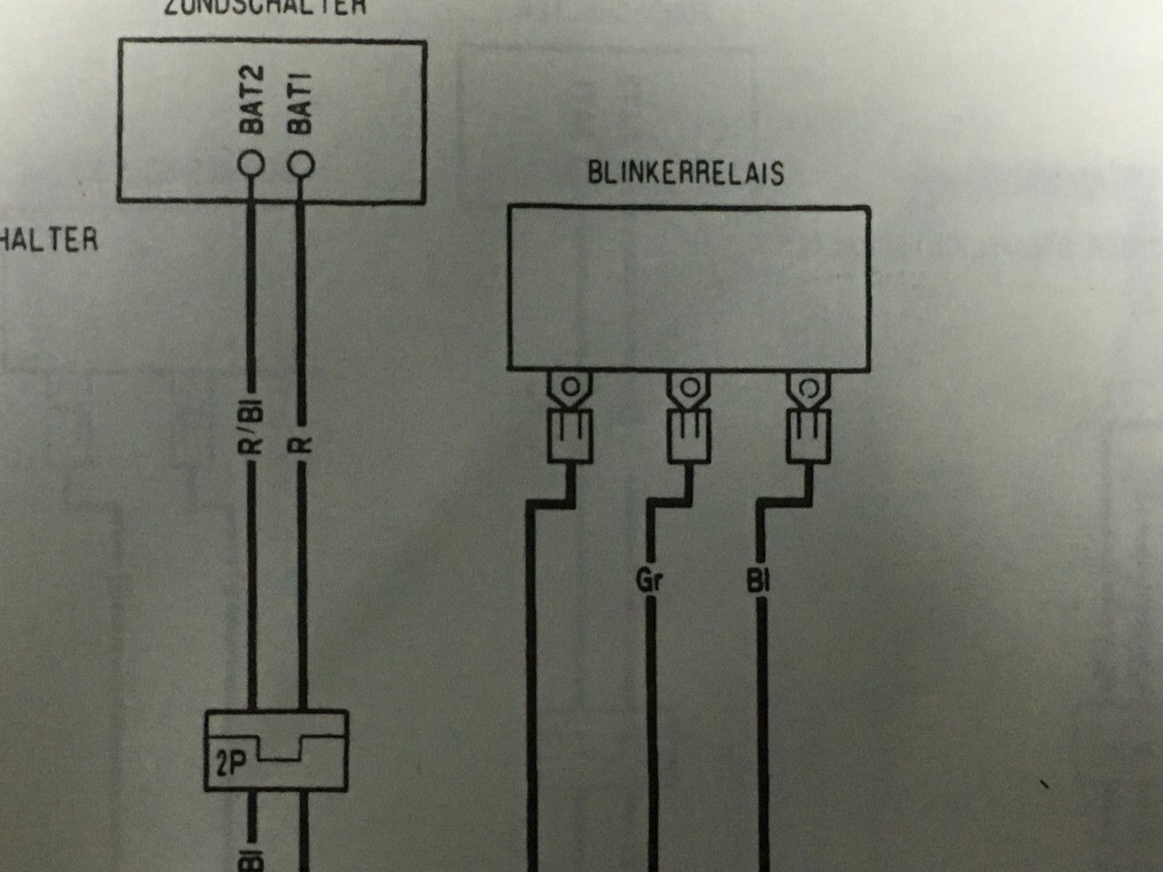 - Das GRÜNE Kabel deines neuen Relais würde dann zum Blinkerschalter führen