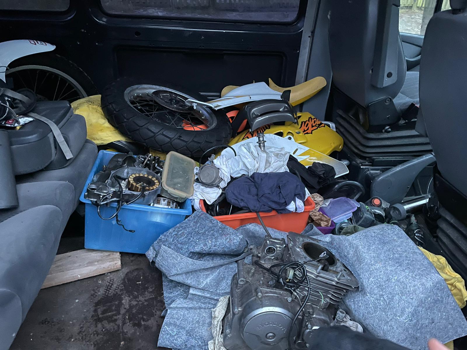 Ein Freund hat ein gutes Angebot für eine RD08 bekommen und zugeschlagen. Der Verkäufer hat dabei einfach ein "Teile-Lager" - bestehend aus Teilen der XR650 und NX650 - für einen schmalen Taler mitgeschickt und gesagt, dass hier wenigstens ein Motorrad draus zu gewinnen sei (Spoiler: Es fehlen natürlich viele Teile) und etwas am Motor zu machen sei! Leider konnte ich ab diesem Zeitpunkt nicht mehr darüber nachdenken mir ein eigenes Motorrad zu kaufen, sondern nur dieses Ding wieder zum Leben zu erwecken
