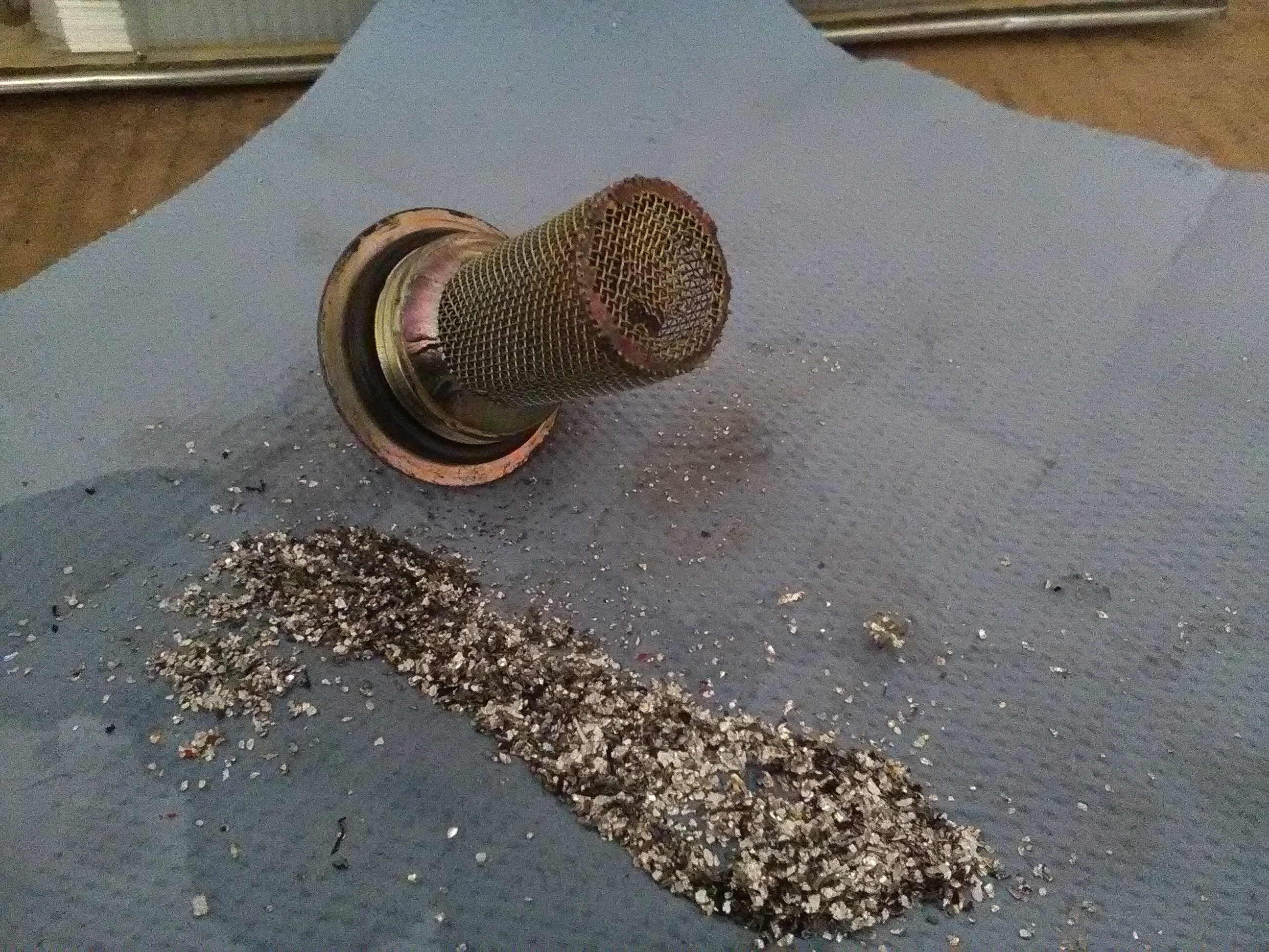 Öl nochmals abgelassen, Rahmensieb leicht mit den alten Spänen belegt, hätte aber genug noch an Öl durchlassen müssen.