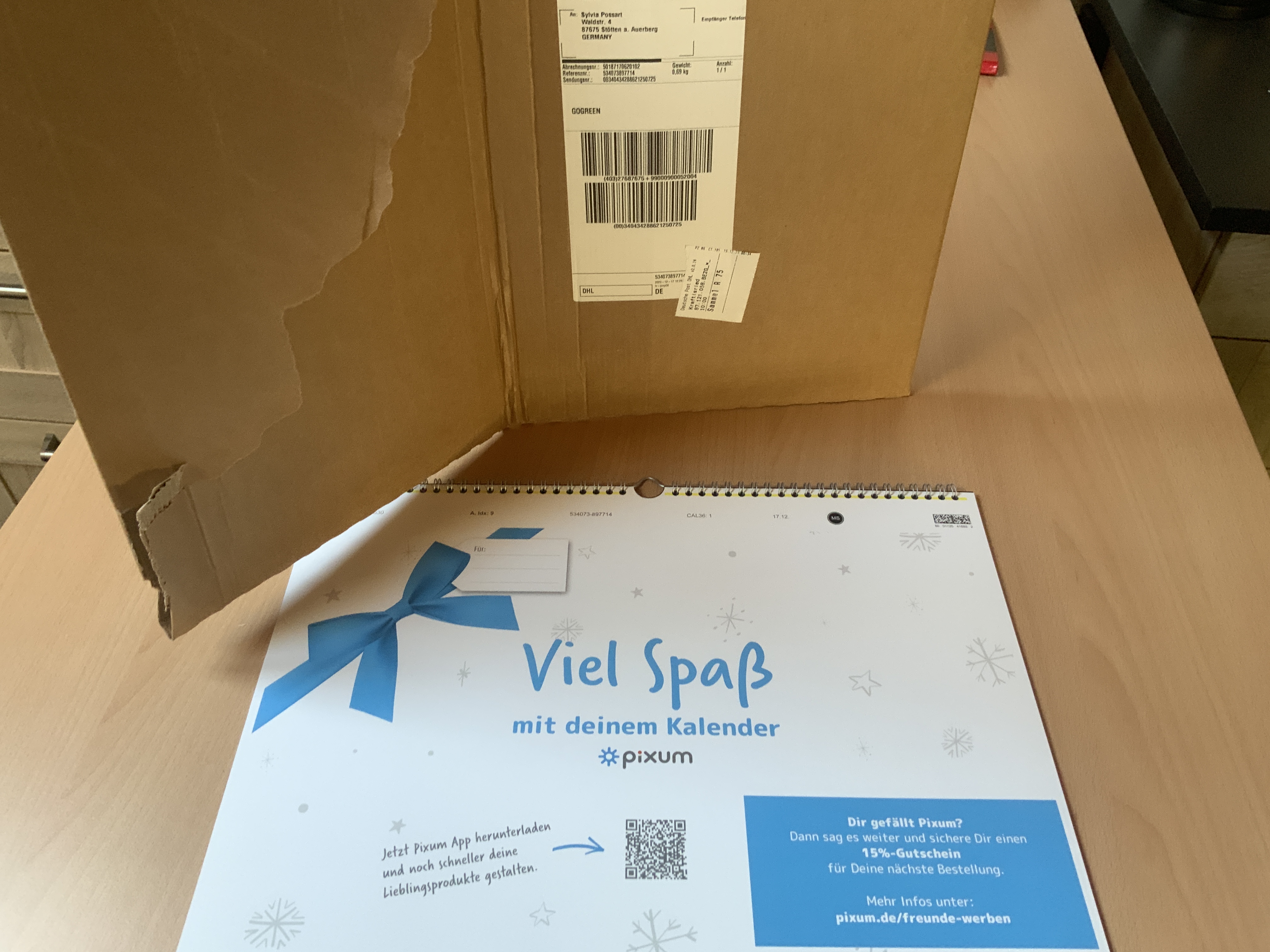 Nun ist auch mein Kalender eingetroffen. War gestern schon da. Lasse Sendungen, die nicht in den Briefkasten