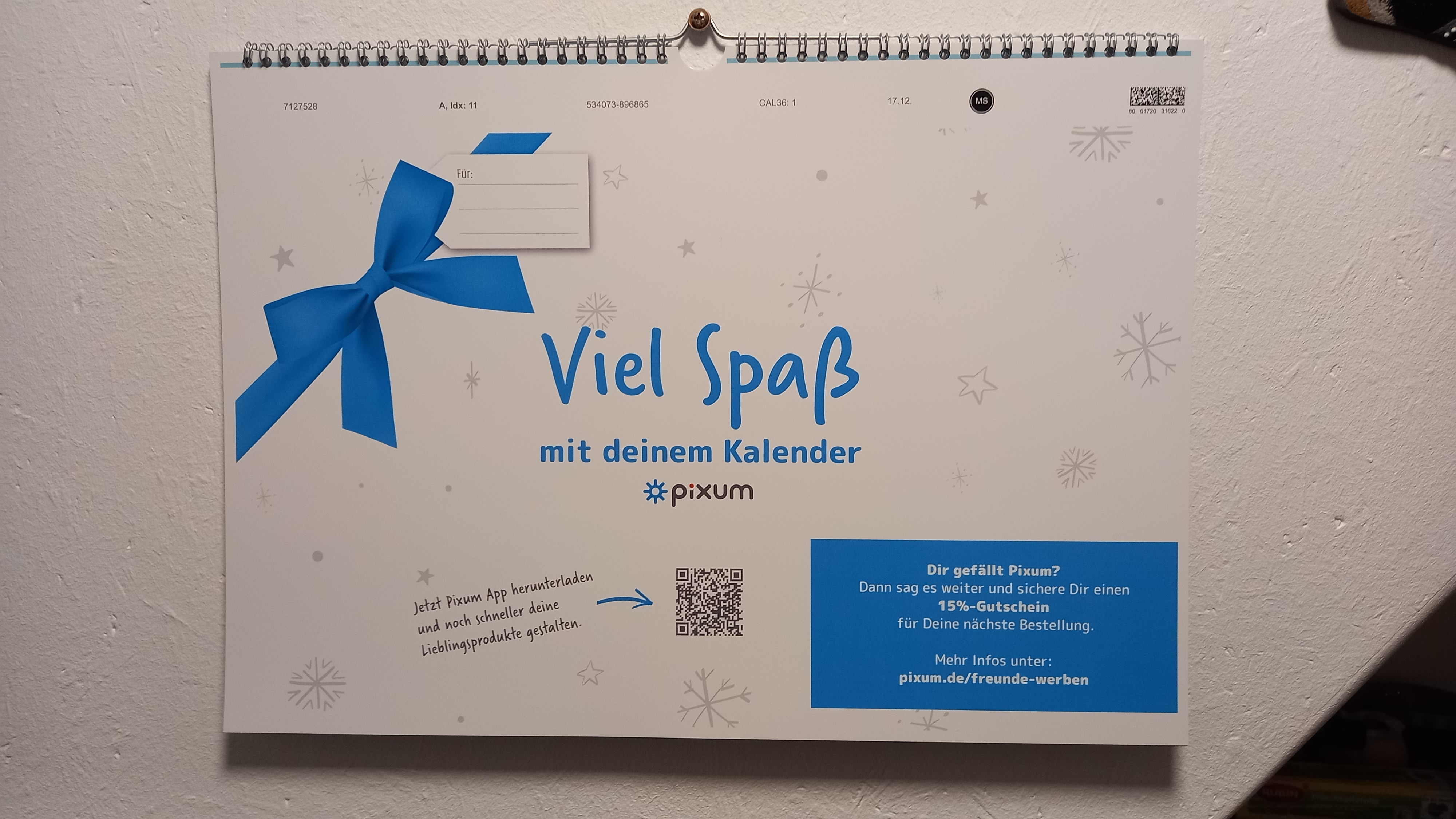 Ich denke das Deckblatt des Kalenders (nicht das von Pixum) ist schon Show enough.