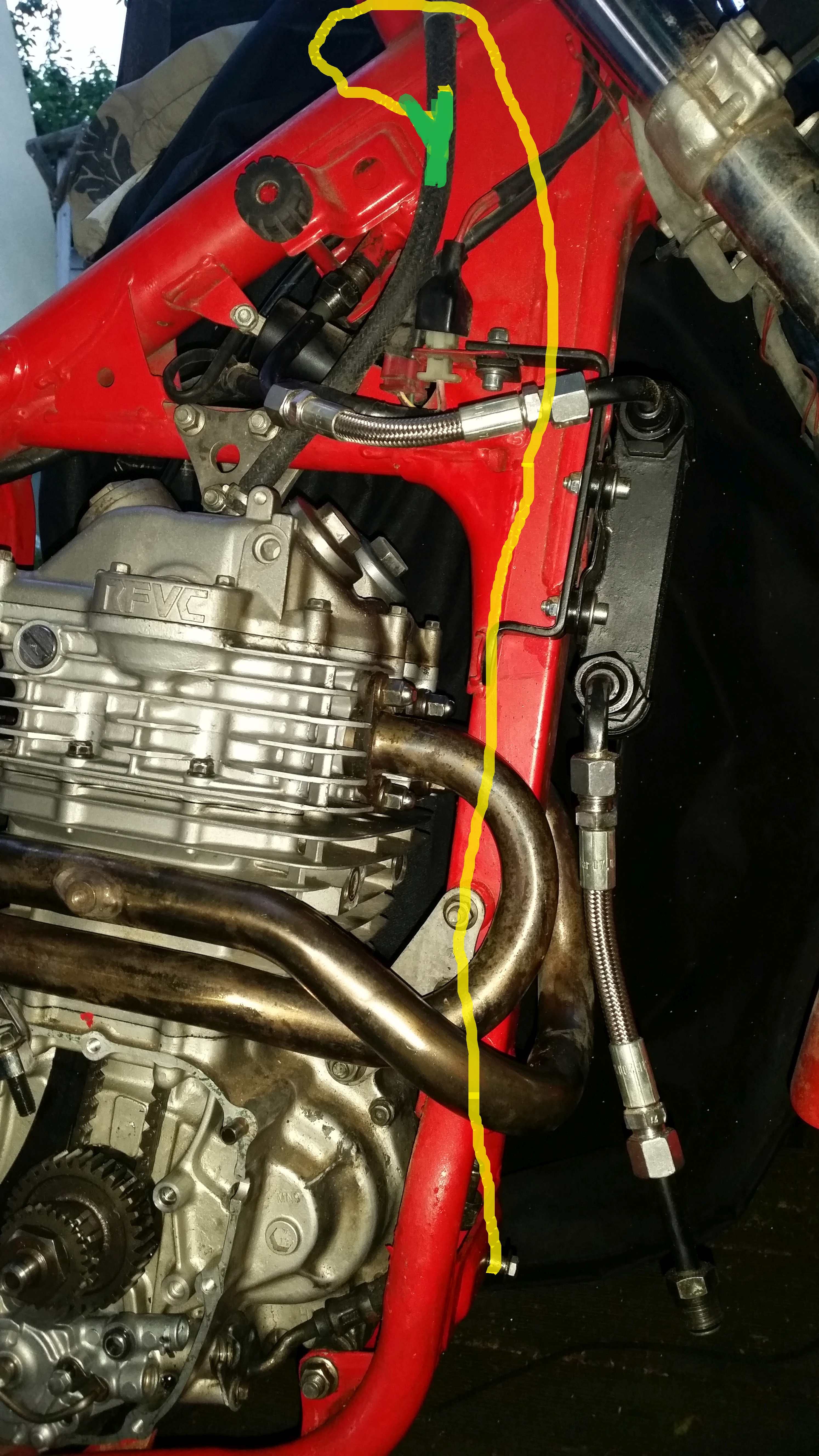 Wollte mich nach ca, 5 oder 6 Jahren Foren-Abstinenz mal wieder melden. Um den Keller leer zu bekommen, habe ich meine 1,5-Ersatzteil-Domis fast fertig zu einer 2. Domi aufgebaut. Dabei habe ich in die 88er Urdomi eine stärker Ölpumpe, einen neuen Kolben, Zylinder etc. verlegt. Jetzt möchte ich eine Ölniveau-Schauleitung einbauen und weder bohren noch schweißen. Dazu wollte ich unten anstelle der Rahmen-Ablassschraube eine Hohlschraube mit einer alten Ölleitung anschrauben. Diese Leitung wird dann an eine durchsichtigen Leitung angeschlossen, die bis nach oben neben den Öl-Einfüllstutzten gelegt wird und im Bogen zu einen Y-Verteilerstück geführt, das in die Leitung vom Rahmen zum Zylinderkopf führt. Spricht aus Eurer Sicht was dagegen?