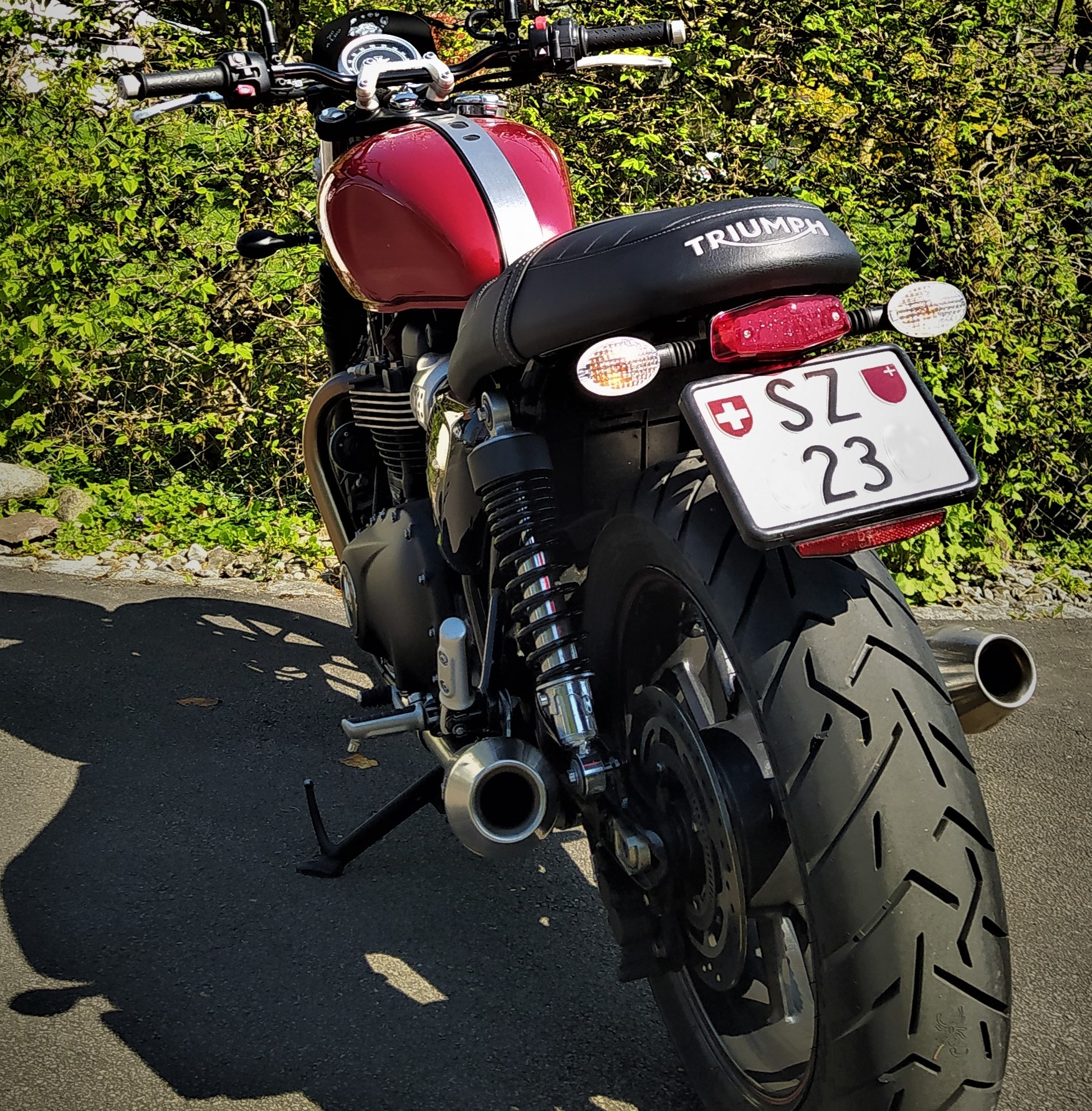 So ist es z.B. bei der kleinen 250er Domi gelöst. Die hat keinen Seitenständerschalter und keine Zündunterbrechung, die mit dem Seitenständer gekoppelt ist. Aber sobald man das Motorrad gerade stellt, klappt der entlastete Seitenständer von selbst hoch.