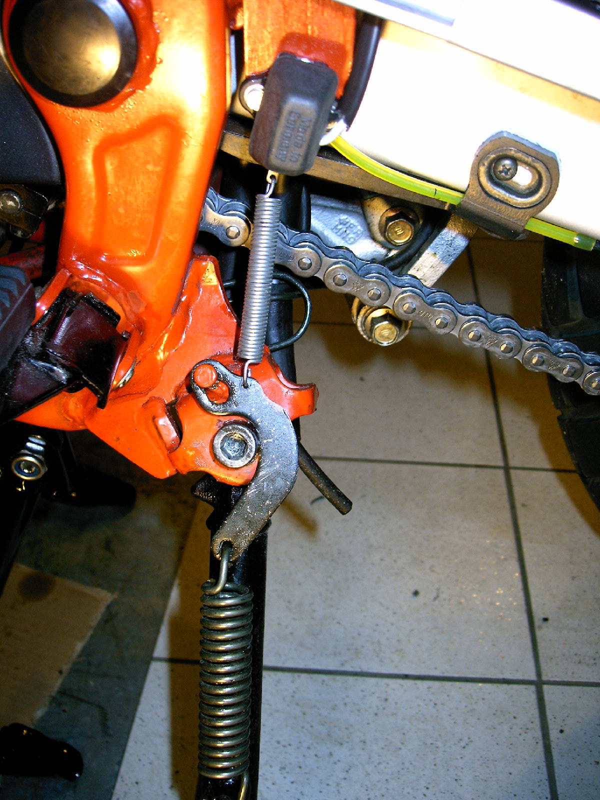 So ist es z.B. bei der kleinen 250er Domi gelöst. Die hat keinen Seitenständerschalter und keine Zündunterbrechung, die mit dem Seitenständer gekoppelt ist. Aber sobald man das Motorrad gerade stellt, klappt der entlastete Seitenständer von selbst hoch.