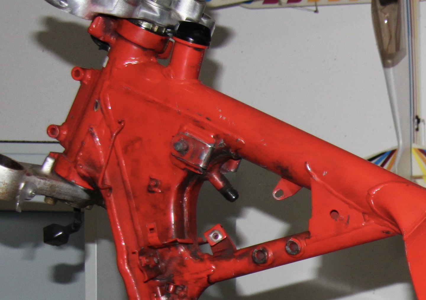 des durchgetrennten Bolzen an passender Position für die Gummilager zur Aufnahme des XL-Tank stehen.