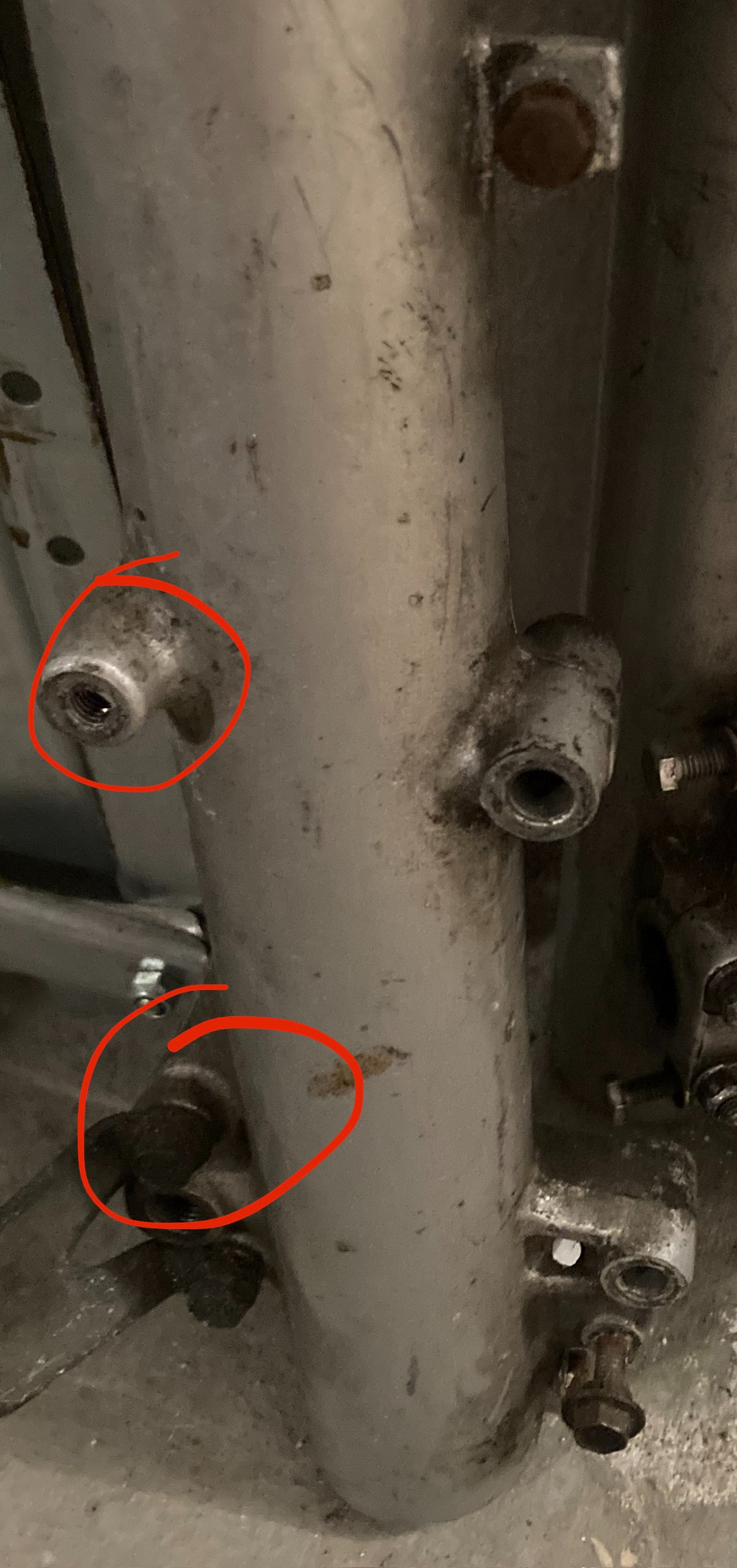 Müssten die von mir markierten Gewindebohrungen sein.
