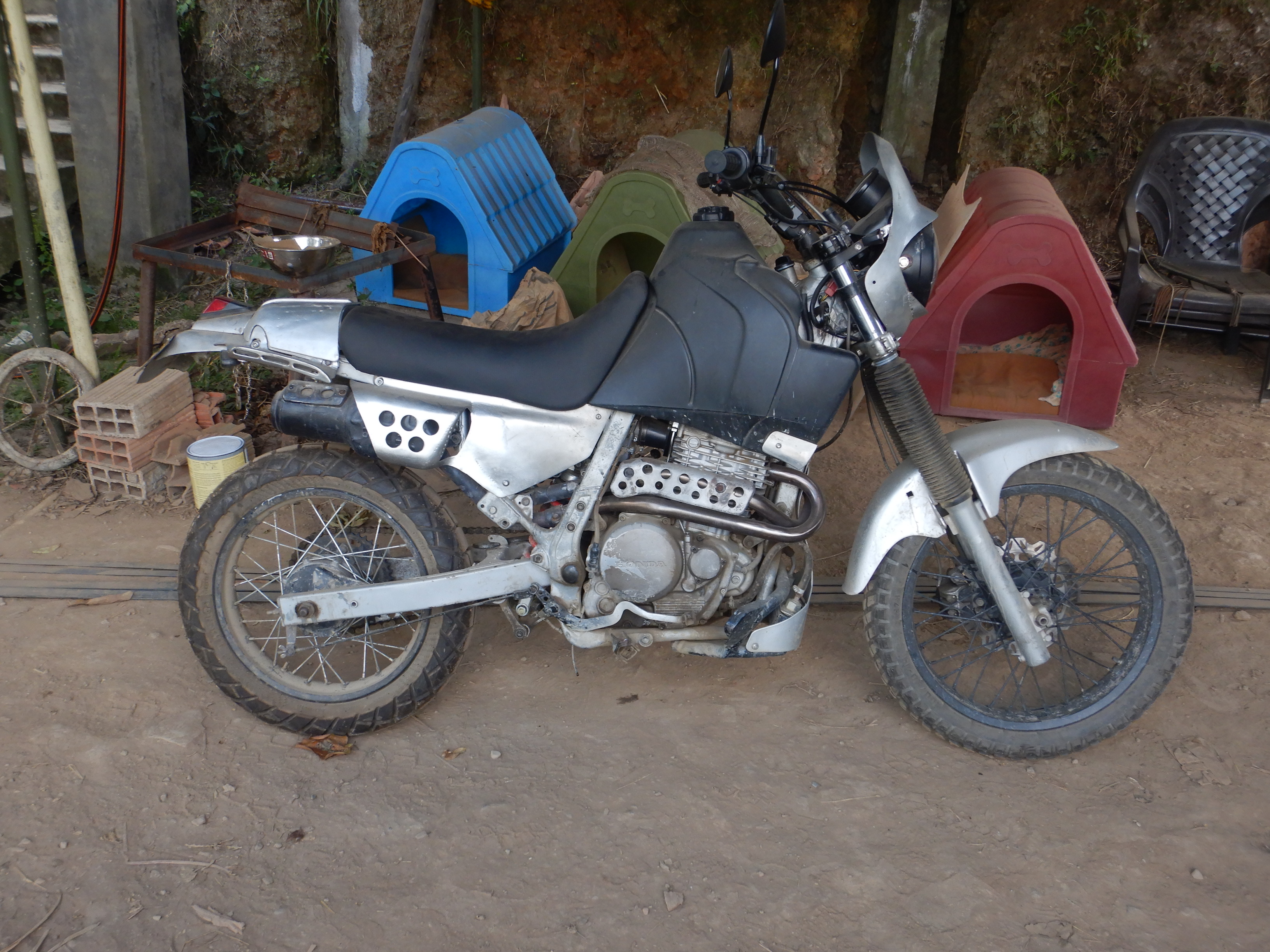 rechte Fussraste umgeschweisst fuer weniger Beinwinkel (hatte damals bissel Knieprobleme), Bremspedalhebel auch verlaengert
