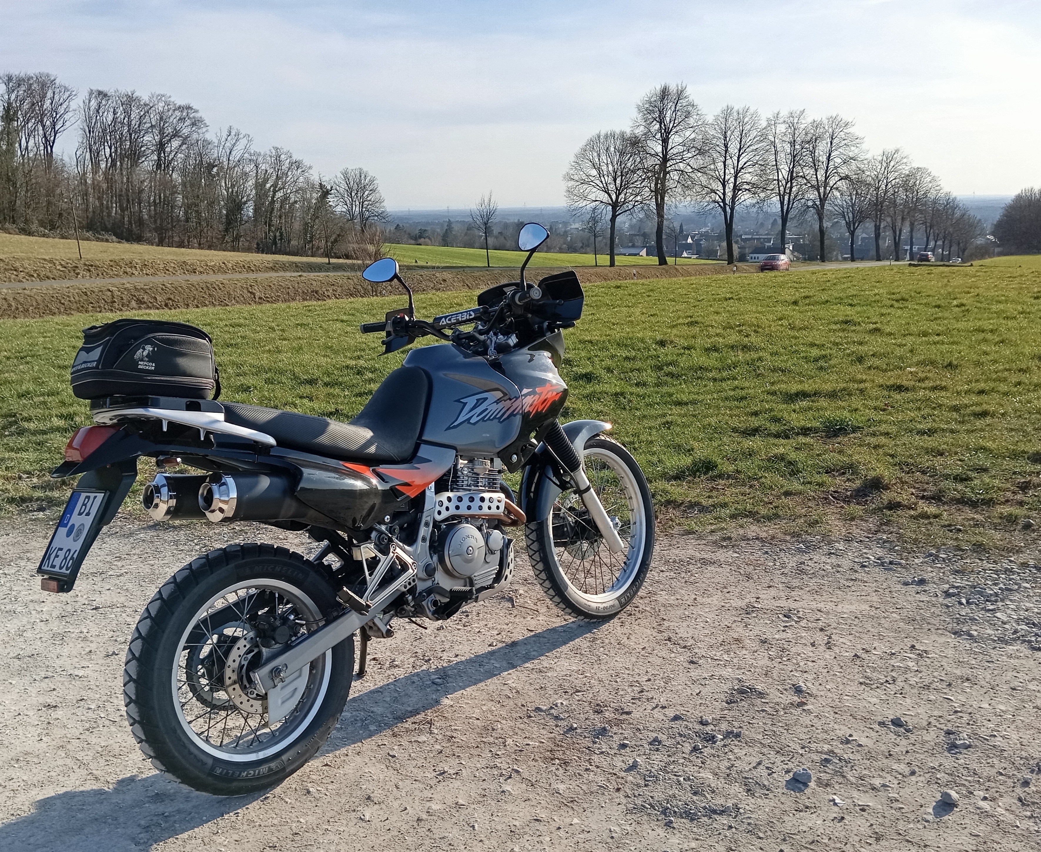 Ich war heute wieder mit der Domi unterwegs, kleine Runde zur Brocker Mühle, einem Motorrad Treff bei mir in der Gegend. Auf dem Rückweg hatte mich plötzlich ne XT660Z überholt...Fahrer mit flachen Sneakern sind mir eh suspekt aber ich wollte dann doch mal sehen was die Domi noch so kann. Die 660 müsste nominell 4-5 PS mehr haben und der Fahrer schien sehr in Eile zu sein ;) . Tatsächlich war es überhaupt kein Problem mit der Honda dran zu bleiben, was mir schon eine innere Befriedigung bereitete.