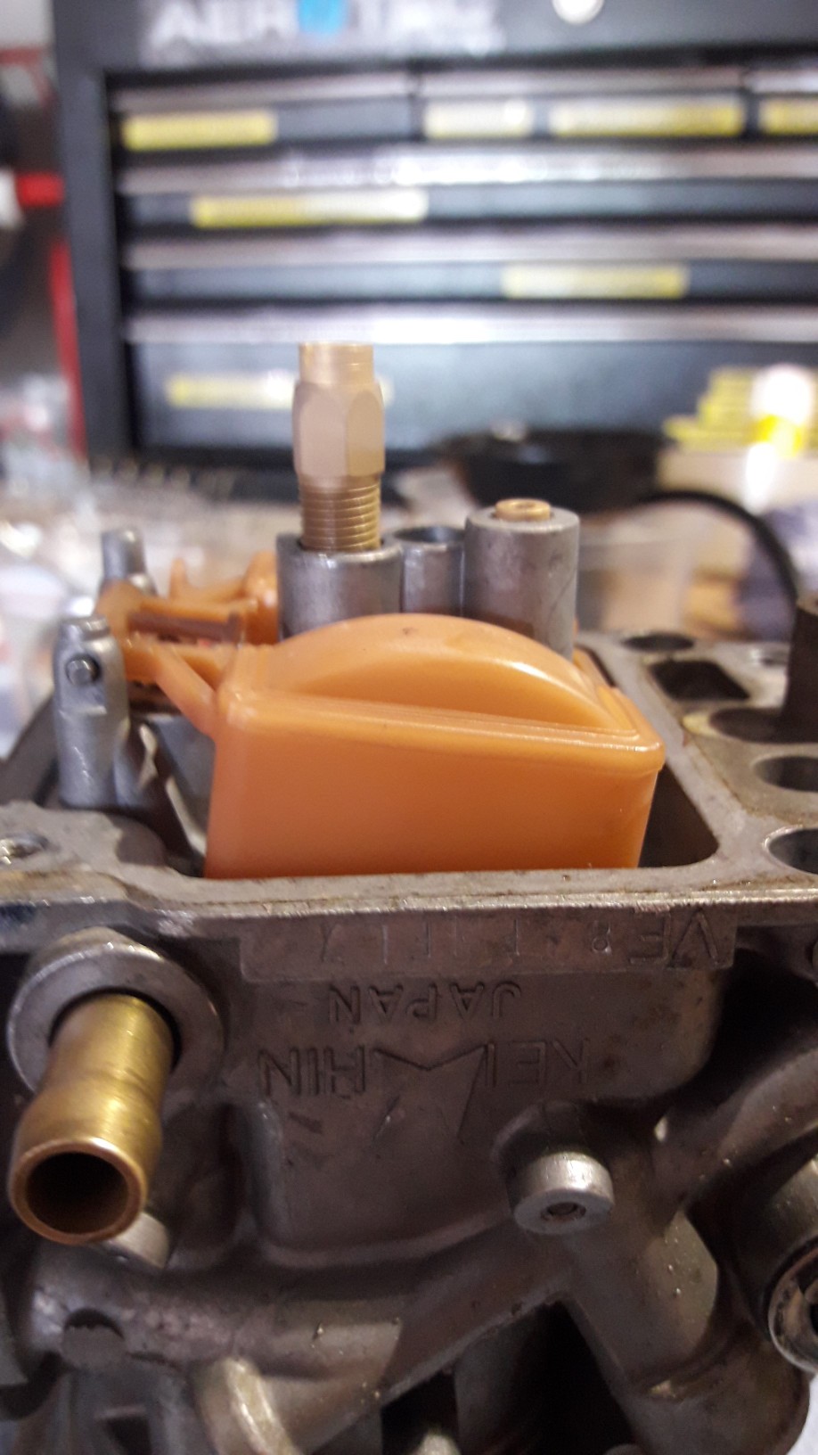 Laut Handbuch beträgt die Schwimmerhöhe ja 18,5 mm. Leider hat der Schwimmer keine Metallzunge, die man verbiegen kann, um die Höhe zu korrigieren. Laut Handbuch ist der Schwimmer im Fall einer falschen Höhe auszutauschen.