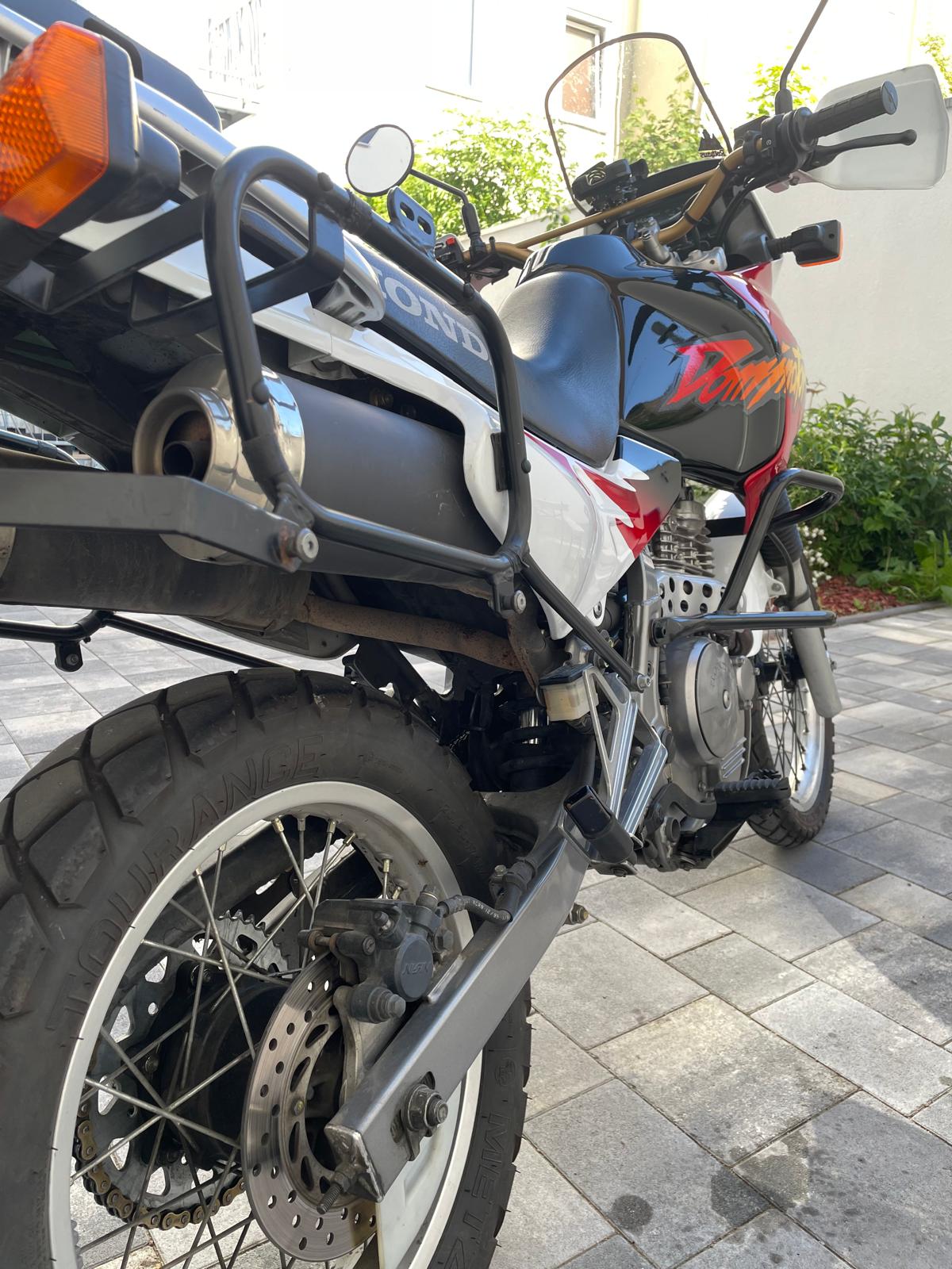 Sie ist aus dem Baujahr 96 und hat bisher knapp 27.000km gelaufen. Ich habe sie erst seit zwei Wochen, bin etwa 600km gefahren und immer noch begeistert. Vorher habe ich aber das Öl und den Filter gewechselt, das war nämlich fällig. Dann noch die Kette gereinigt und den Luftfilter getauscht, obwohl der ja noch ein bisschen gedurft hätte. Bremsflüssigkeit und Zündkerze stehen noch an.