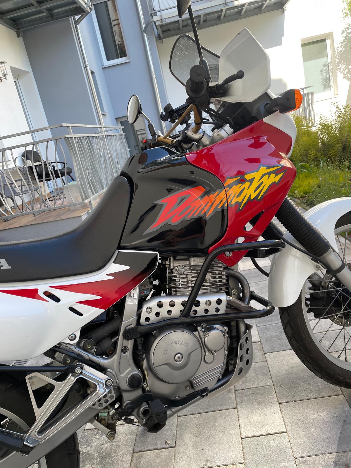 Sie ist aus dem Baujahr 96 und hat bisher knapp 27.000km gelaufen. Ich habe sie erst seit zwei Wochen, bin etwa 600km gefahren und immer noch begeistert. Vorher habe ich aber das Öl und den Filter gewechselt, das war nämlich fällig. Dann noch die Kette gereinigt und den Luftfilter getauscht, obwohl der ja noch ein bisschen gedurft hätte. Bremsflüssigkeit und Zündkerze stehen noch an.