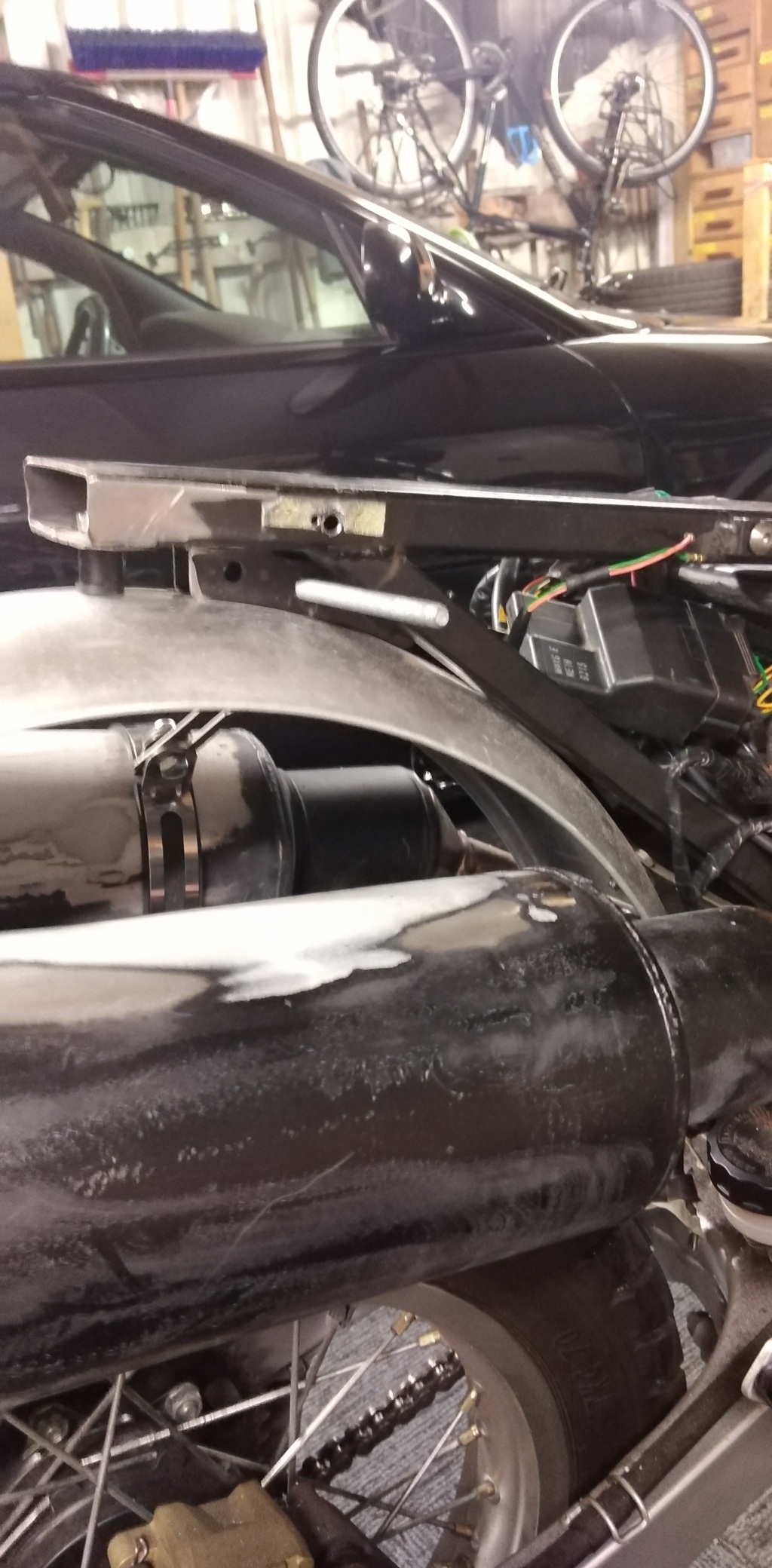 ich bin endlich einige Schritte weiter und bedanke mich bei allen Tippgebebern. Endpötte elegant befestigt, da hab ich vor Freude getanzt, Sitzbank tiefer, Seitendeckel kommen wenn der LF Kasten wieder drin ist und die Elektrik verstaut ist. Auf den Fotos sieht man nun den Rahmen genau, auch, warum der Fender nicht höher geht, er stößt gegen den Hilfsrahmen, die Sitzbank musste ein wenig Schaumstoff lassen, liegt jetzt lose auf, aber wenn sie befestigt ist schließt sie mit dem Fender ab