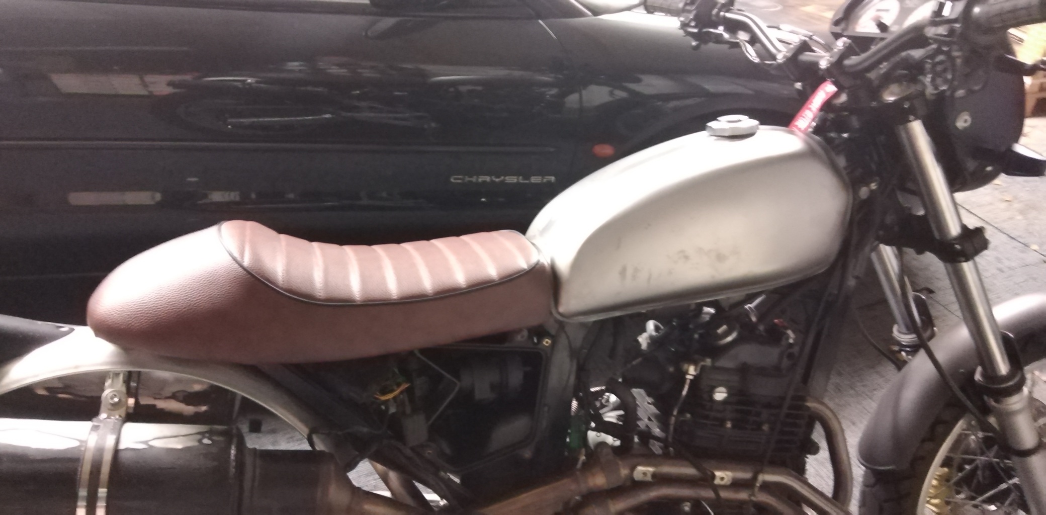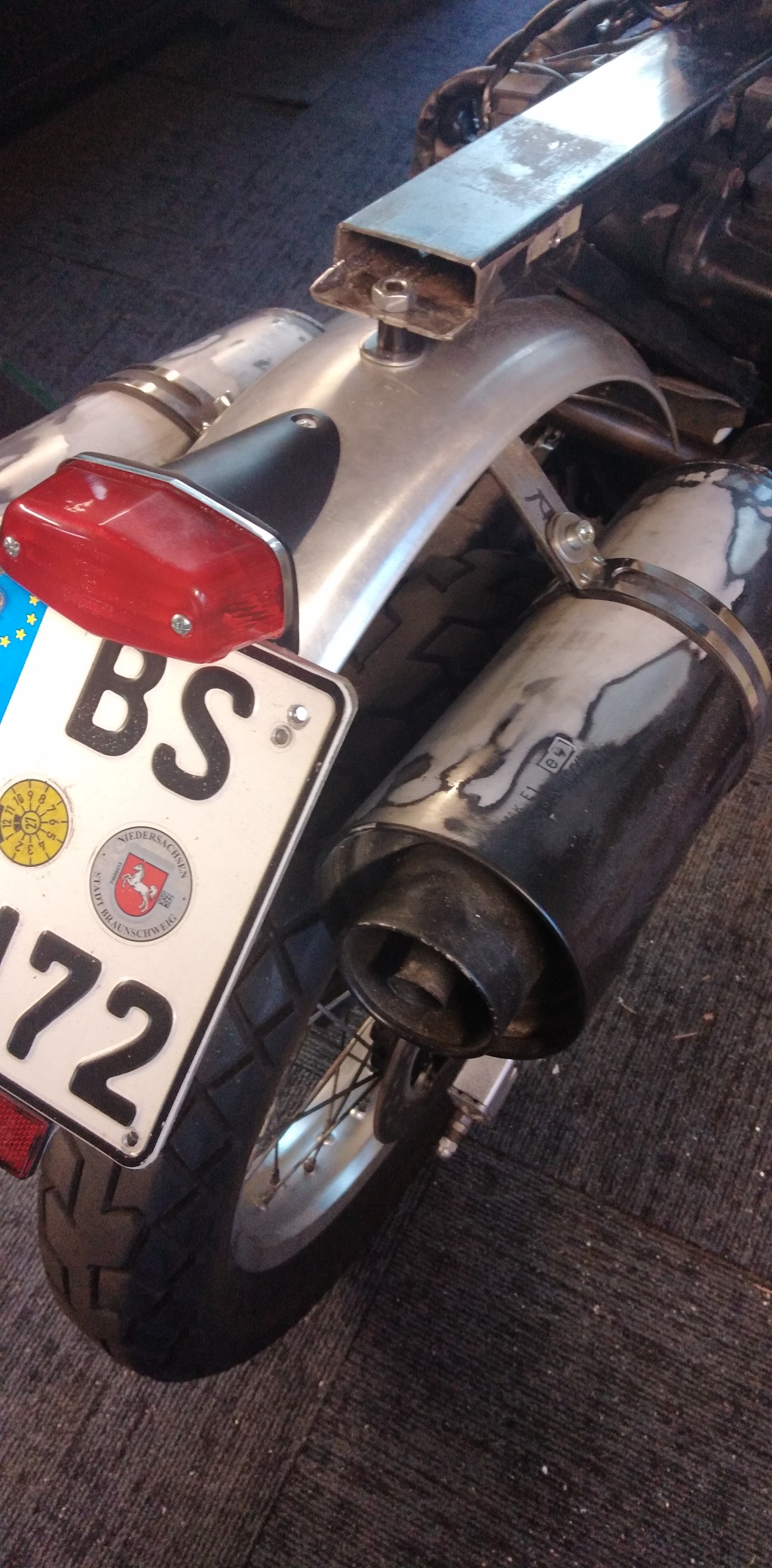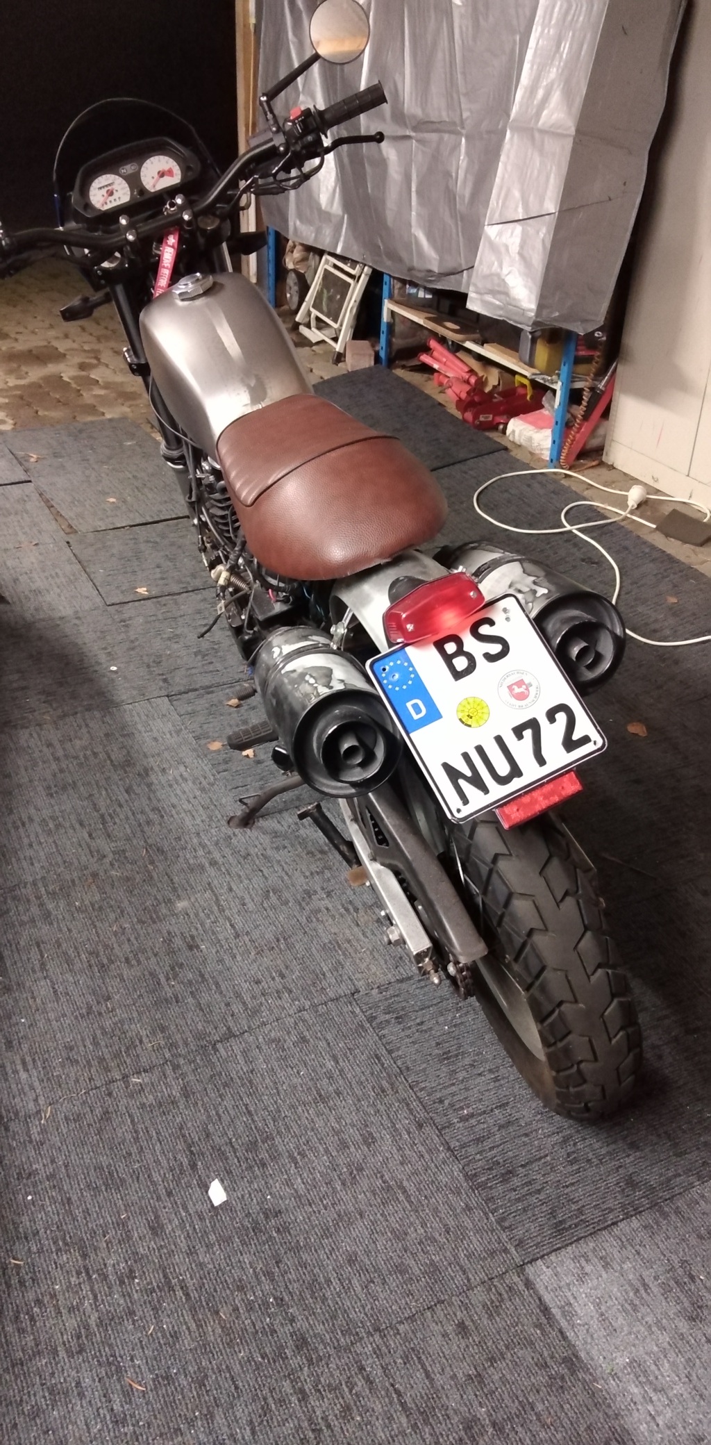 Ich muss sagen, dass ich den Umbau bis auf die Endtöpfe und die Fußrastenanlage gut finde. Diese Cockpitverkleidung erinnert mich ein wenig an aktuellere Modelle von HD. Muß man nicht mögen, kann man aber.