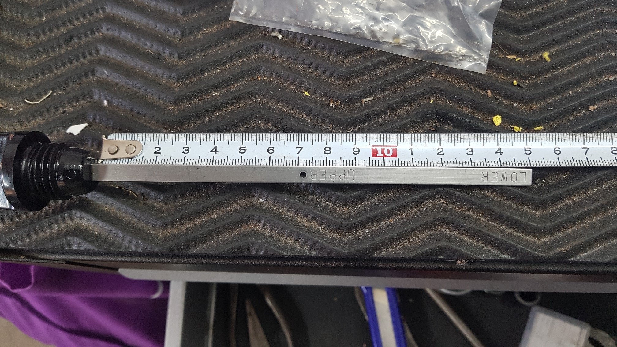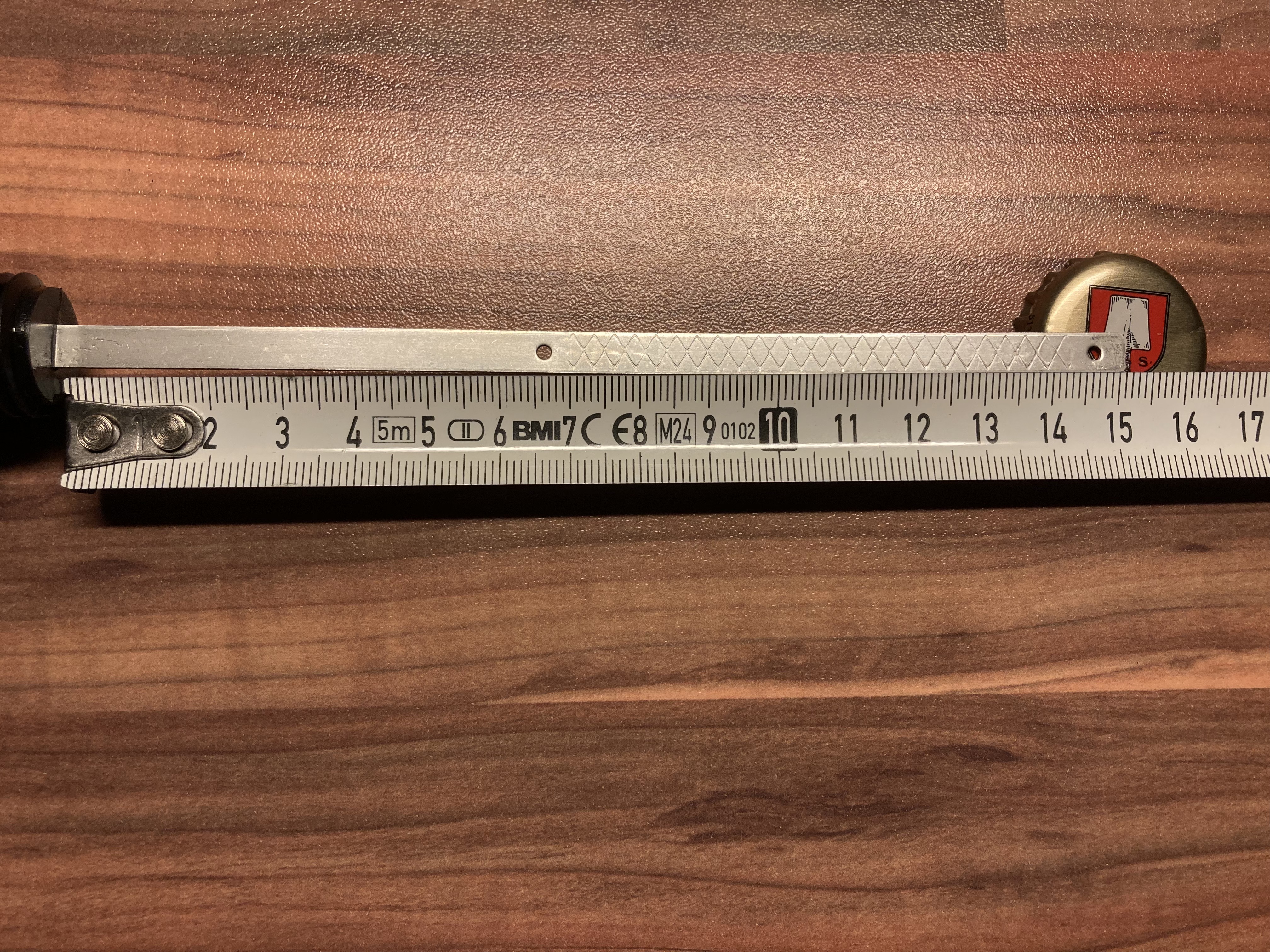 Gemessen habe ich dieses Mal ab Unterkante Gewinde. Also so, als wenn man den Ölstand misst und den Peilstab nur aufsetzt und nicht einschraubt.