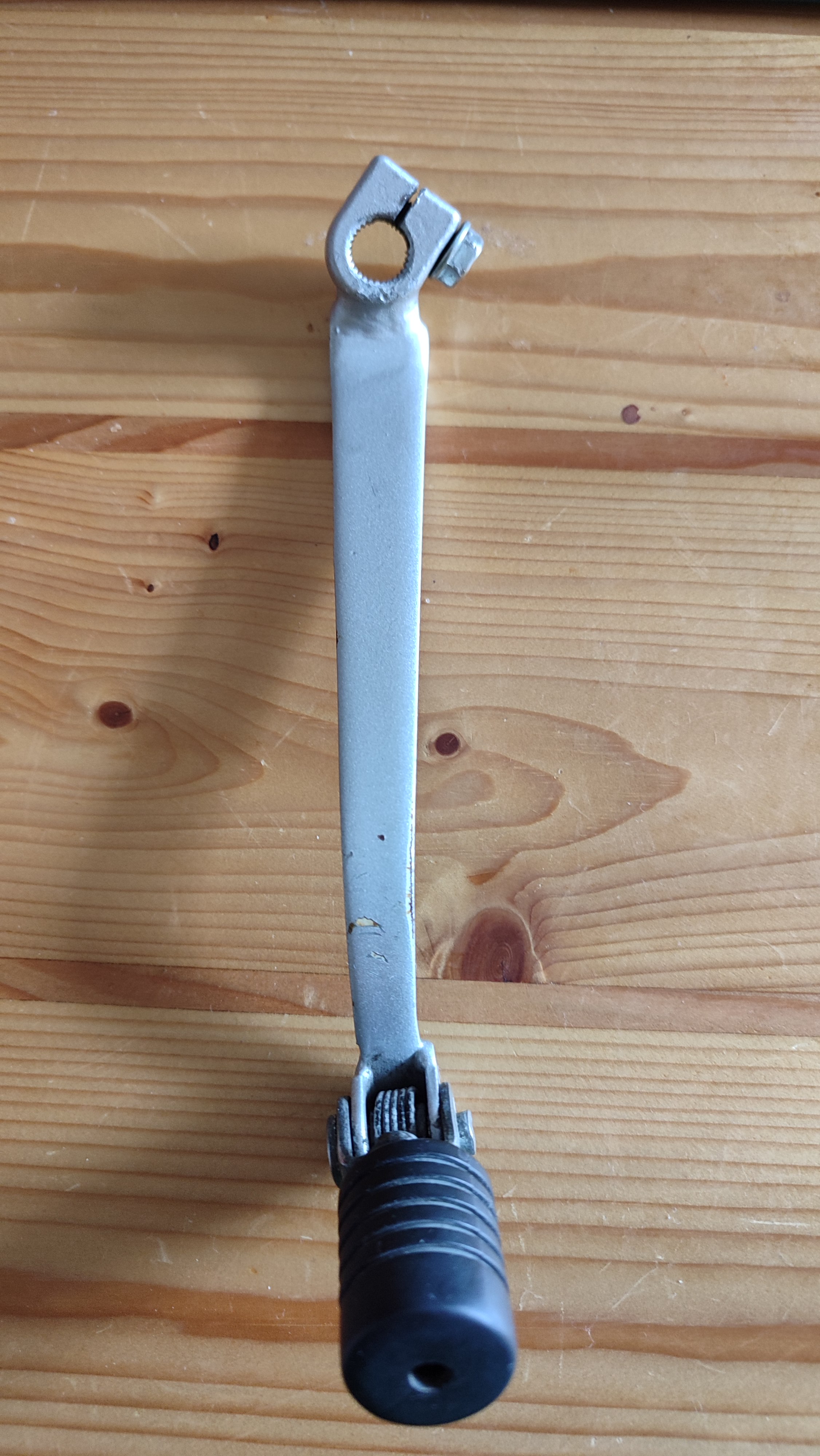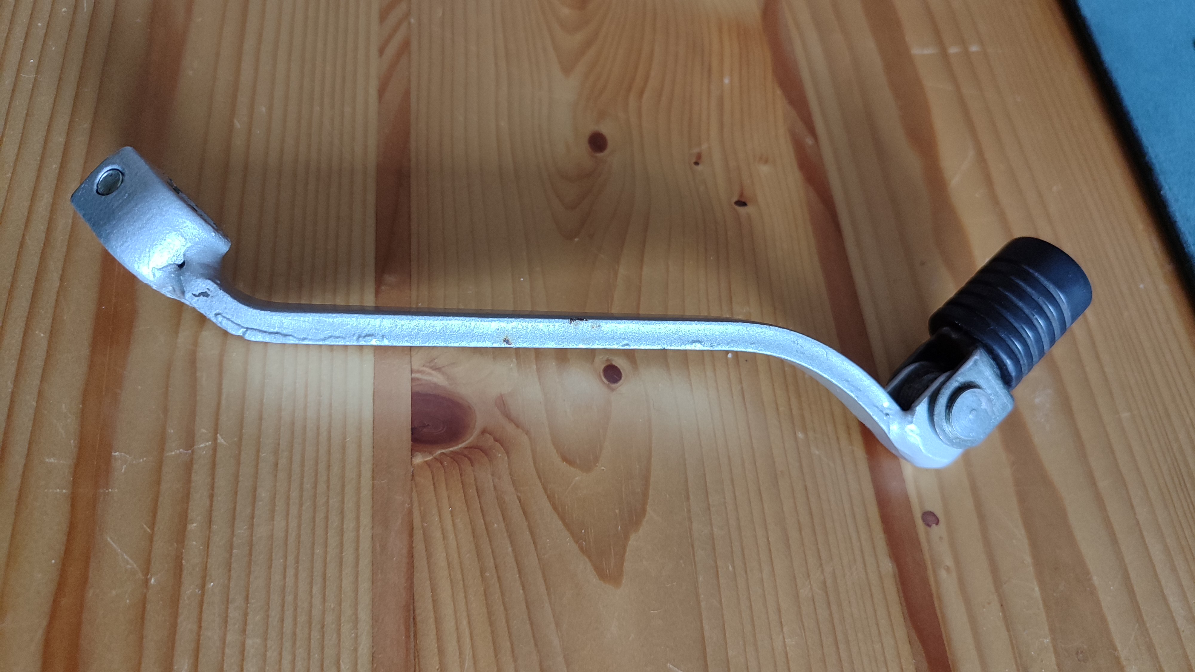 Übrigens mit steifen Crossstiefeln nicht versuchen UNTER den Hebel zu kommen ,sondern mit der Seite des Stiefels hoch drücken .