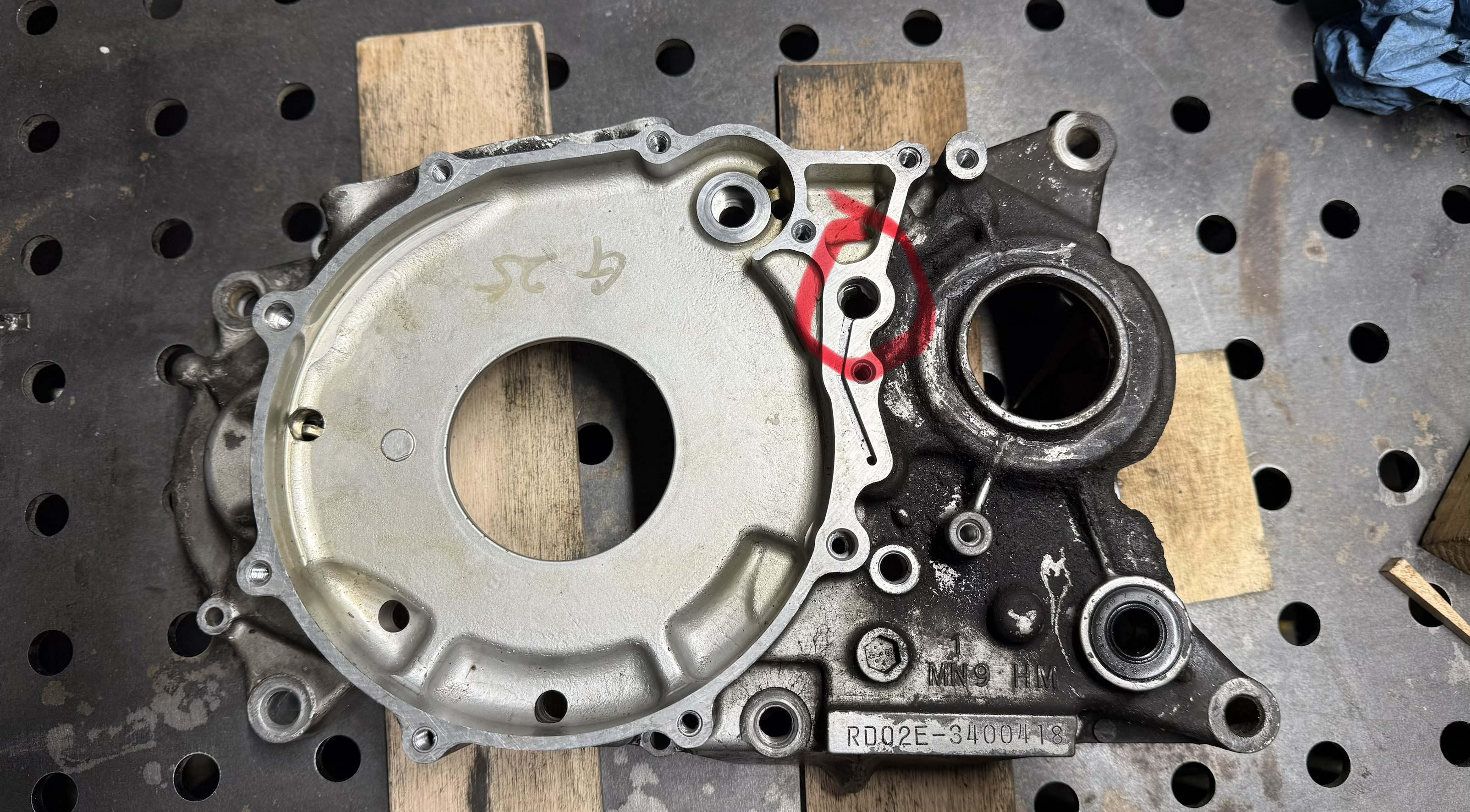Auf Grund von abgerissenen Schrauben bei der Demontage vor 15mJahren hatte ich mir vor Jahren ein separates Motorgehäuse geholt. Dieses habe ich jetzt demontiert, Lager, Simmeringe und Dichtingen entfernt.