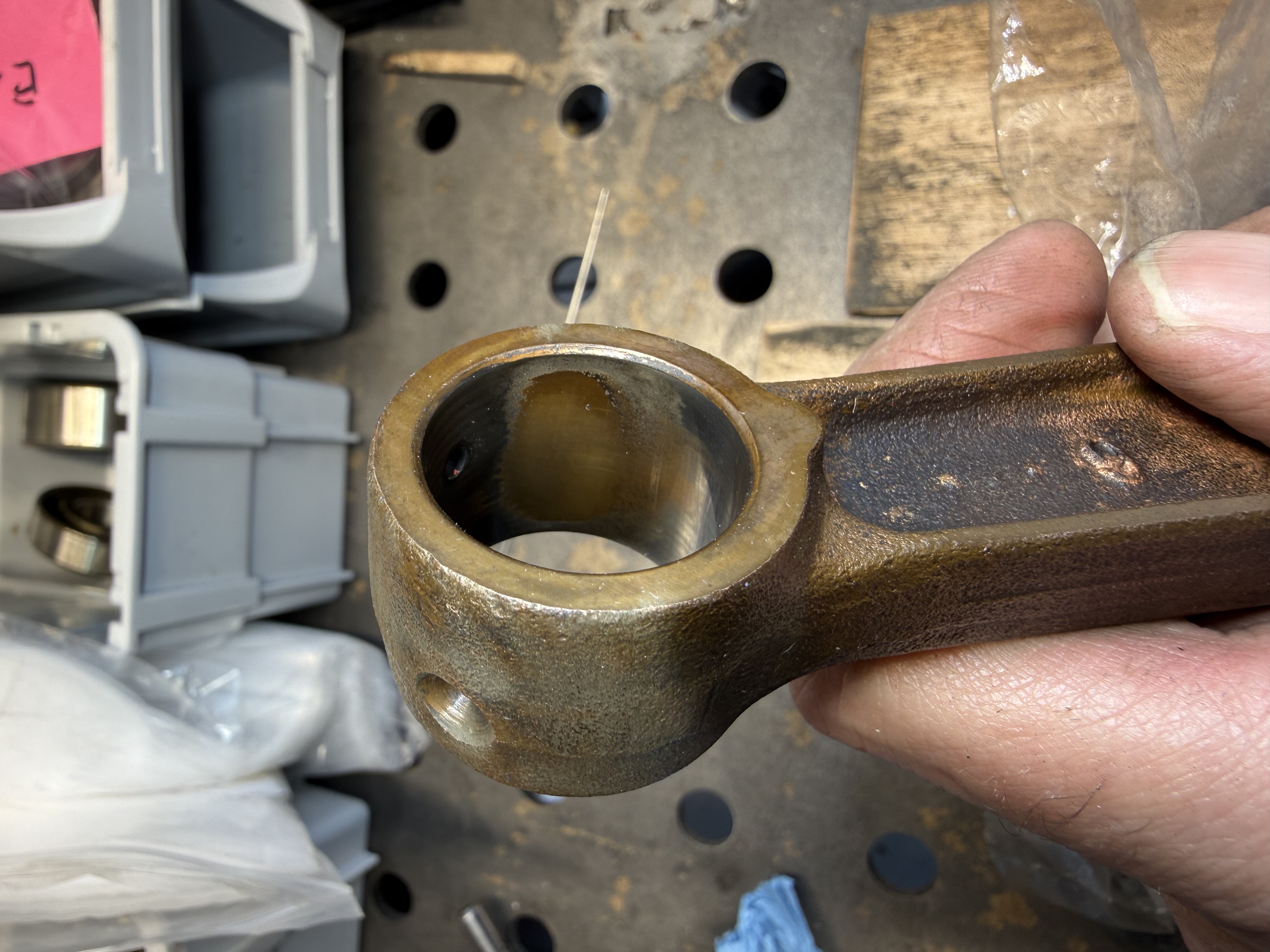 Hallo Steffen - das Pleuel schaut 'nicht_gut' aus - fast so, als ob das obere Pleuel-Auge 'unrund' wäre (!)