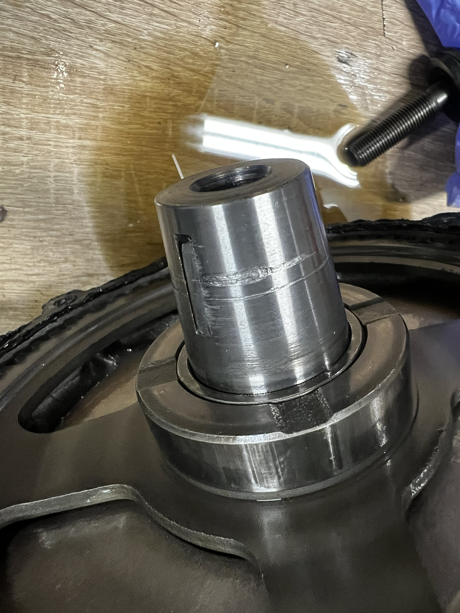 Und eine abgescheerte Scheibenfeder sieht man auch nicht alle Tage. Wobei es mir ein Rätsel ist, wie das an der Stelle zustande kam. Da wird kein Drehmoment übertragen, das macht der kegelförmige Kurbelwellenstumpf, die Scheibenfeder dient lediglich der Positionierung. Sieht jedoch eher danach aus, als wäre dort kein Normteil verwendet worden, sondern irgendwas, und die Schraube vom Polrad war scheinbar nicht richtig festgezogen