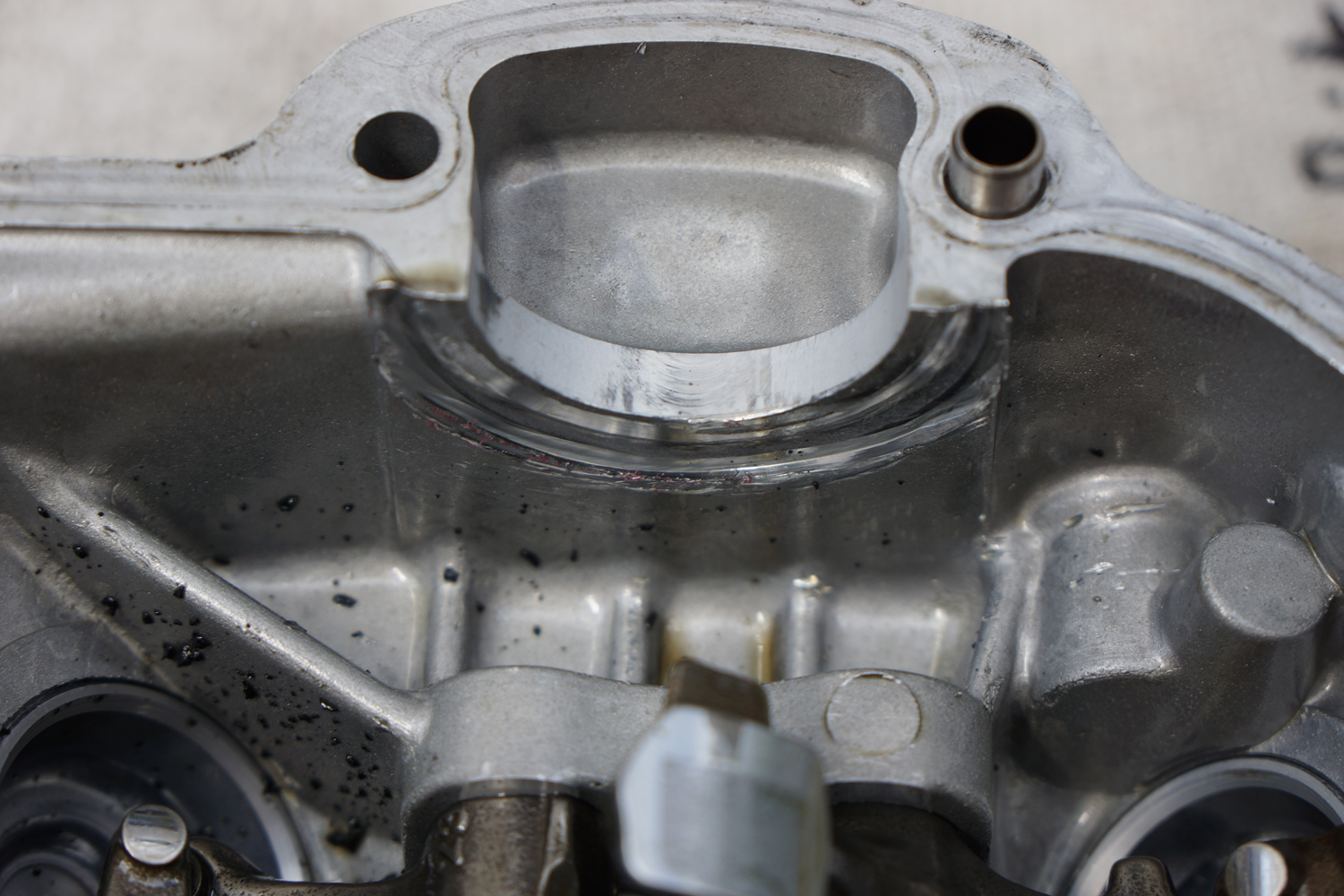 Als Nebenbefund hatte ich bereits vor der Reinigung des Zylinderkopfes zwischen den Ventilsitzen und dem Kerzengewinde 3 kleine Haarrisse, die allerdings nach Ansicht eines Motorradmechanikers noch lange keine Probleme machen würden.