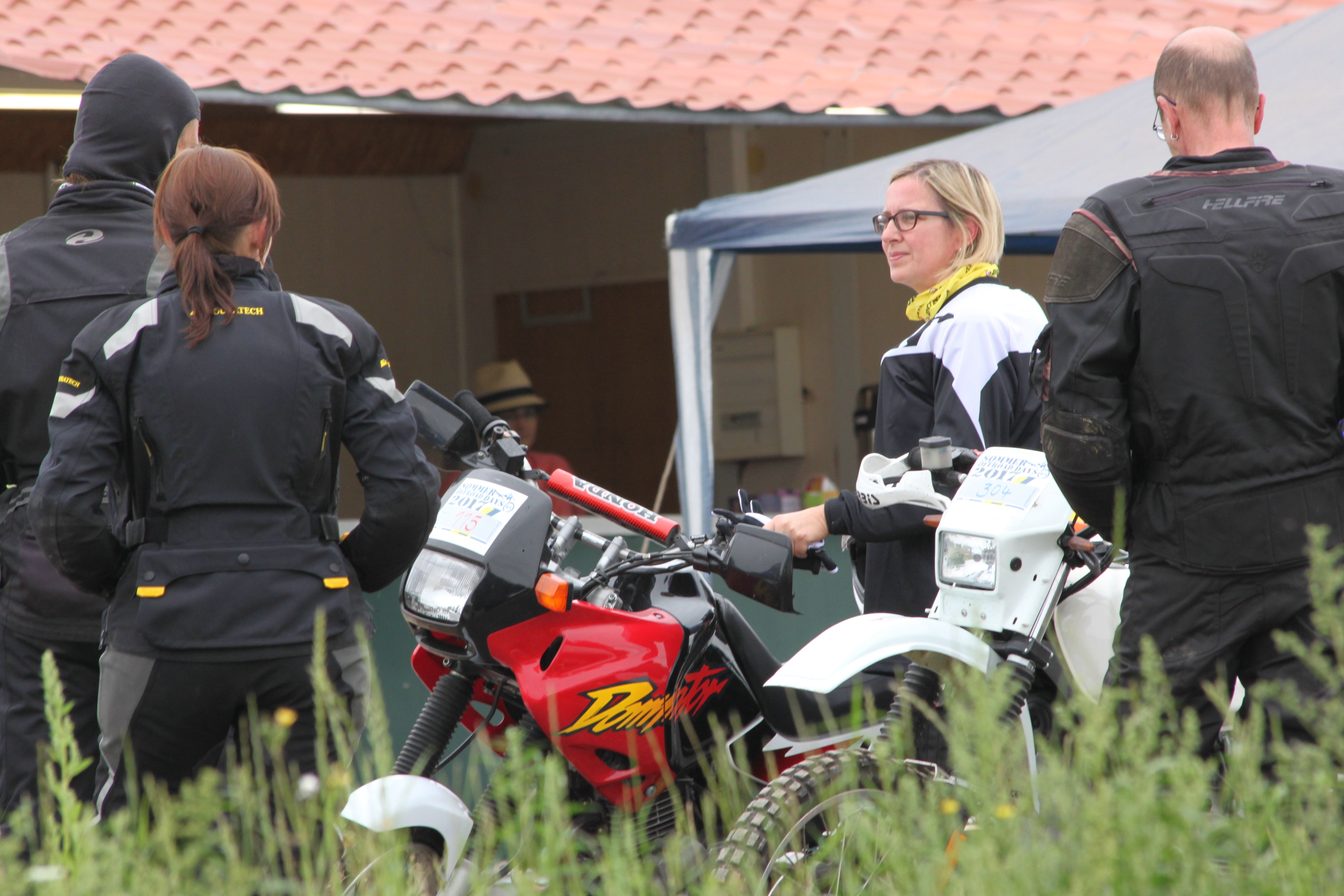 Hierbei wechselte ich allerdings das Moped und fuhr mit Annas Nixe eine Runde. Ilona und Jan fuhren mit. Aber auch dieses Mal verpassten wir an einer Stelle den richtigen Abzweig, so dass wir auf der Crossstrecke landeten. Wir entschieden uns, diese komplett fertig zu fahren. Mit der kleinen Domi klappte dies wunderbar. Wahrscheinlich auch deshalb, weil ich wusste, dass sie mit nagelneuen TKCs ausgerüstet ist. Traktion war stets vorhanden. Und 23 PS reichen auch im Gelände.