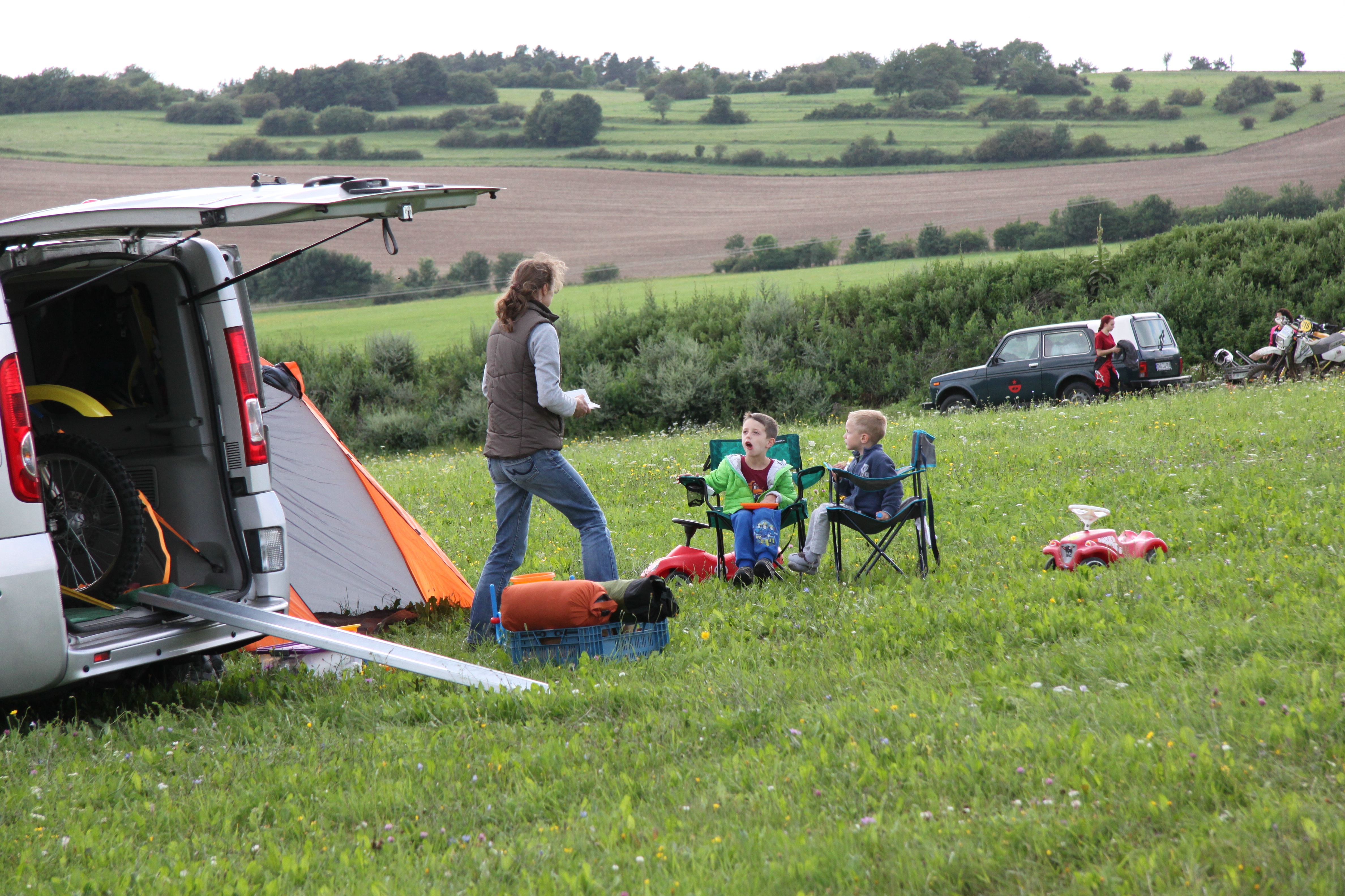 15:00 Uhr - auffe_Wiese (im Fahrer-Lager) angekommen - Plan_machen, Parken / Hinstellen, ausladen - und das in genau der Reihenfolge
