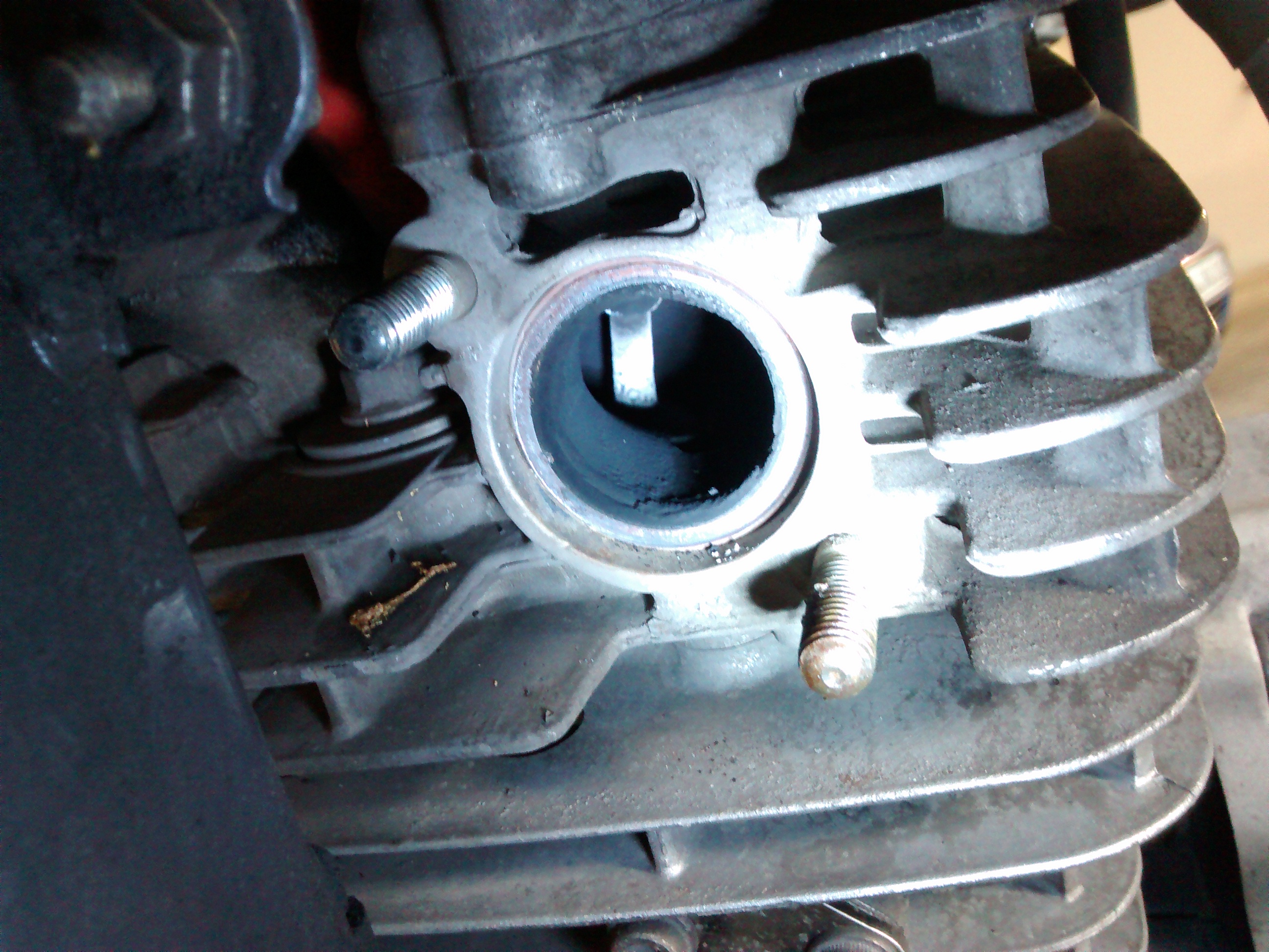 Bei meinem Schraubenmotor und jetzt bei dem neune Ersatzmotor sieht es am Auslass auch so aus, bis hinein in die Krümmer.