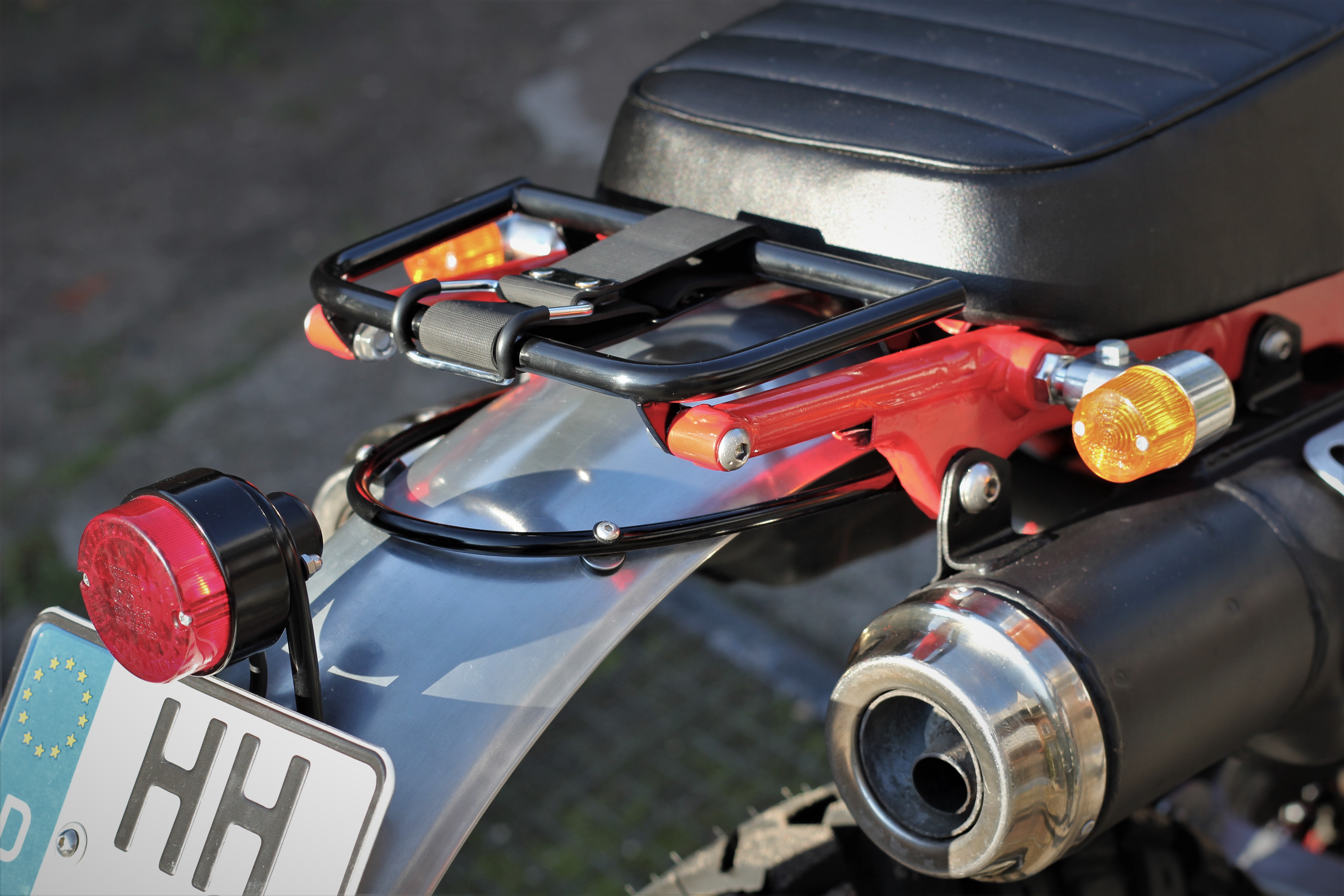 Rücklicht vom Zubehörhändler, Gehäuse minimiert, Halter selbst selbstgebogen, trägt auch das Kennzeichen.