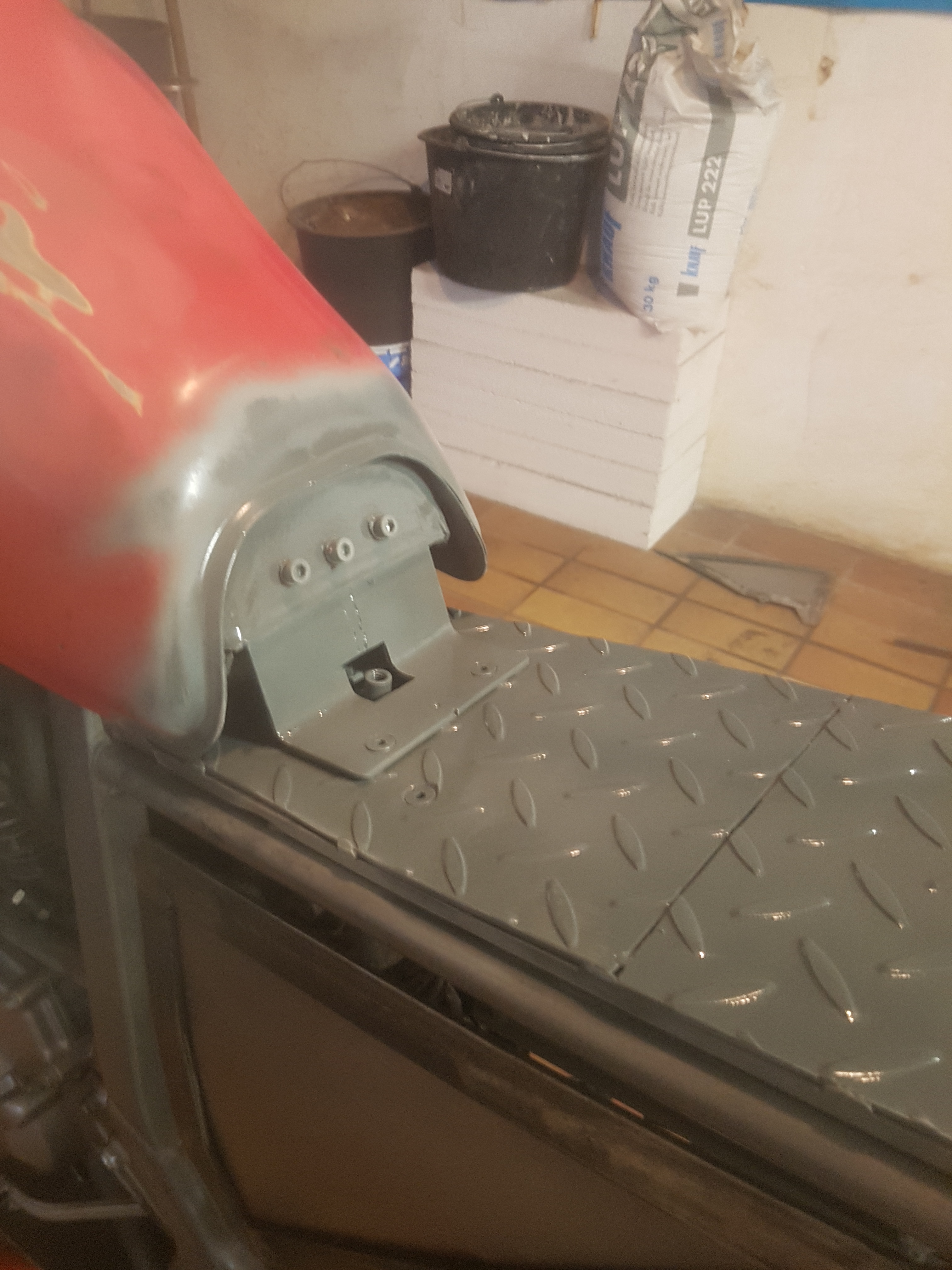 3. Sitzbank bin ich am anpassen. Die Trägerplatte muss noch bisschen geschliffen warden und verschraubt warden. Dann werde ich 100 mm hohes Styrodul drauf kleben und den dann so schneiden das er eine schöne sitzbank ergibt mit schönen übergängen. Dieser dient sozusagen als Negativform für meinen Satller.