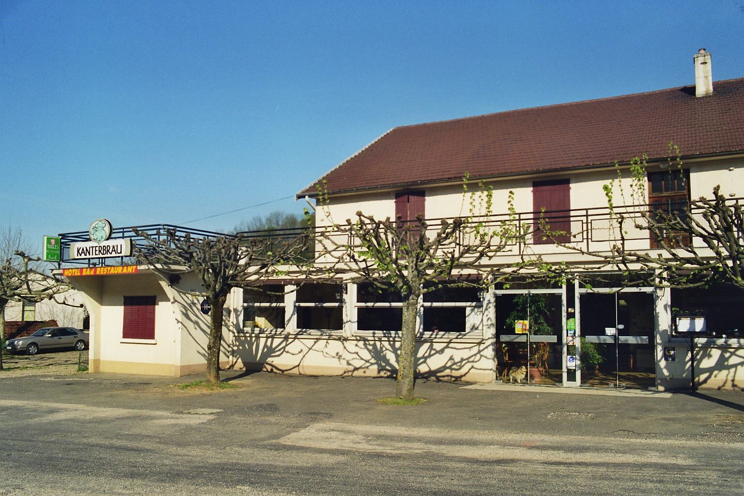 Dank der Autobahn kommen wir schneller voran als früher und können das elende Bruchbuden-Hotel von Clerval meiden. Eine angemessene Unterkunft bietet das erst kürzlich von uns entdeckte „Hotel des Platanes“. Es liegt an der Route National 83 bei Mantry und ist eine Herberge für LKW-Fahrer, die für zivile Preise und gutes Essen steht. Zwei Jahrzehnte lang wird sie unser bevorzugtes Etappenziel auf dem Weg gen Süden bleiben, bevor auch sie, heruntergekommen und überteuert, ihren Betrieb um die Jahrtausendwende einstellen wird. Das Bild habe ich im Jahre 2000 aufgenommen.