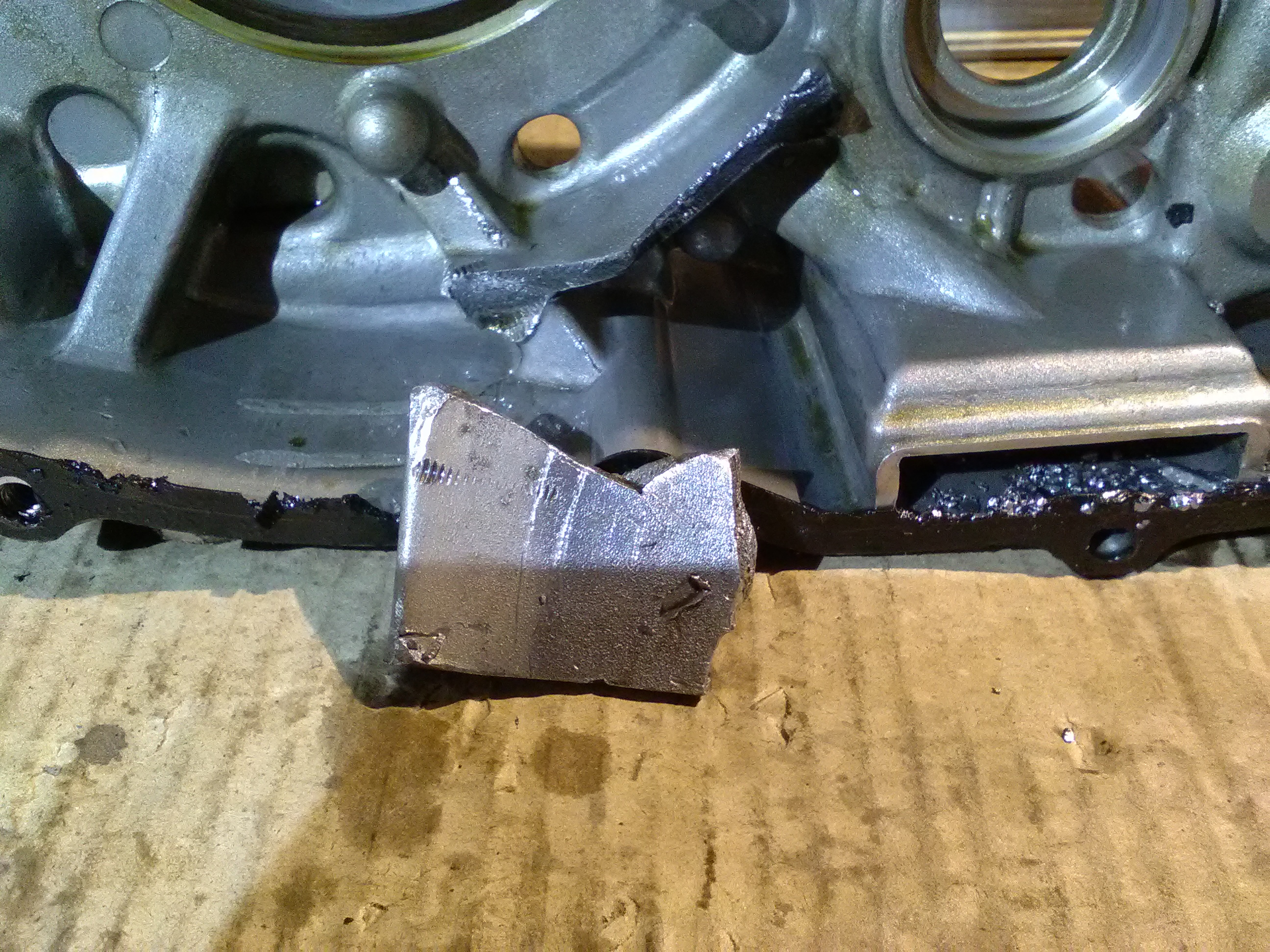So wie vermutet, haben die losen Schrauben die Ölprallbleche /Stücke vom Gehäuse zu der Kurbelwelle zu 2/3 abgebrochen.