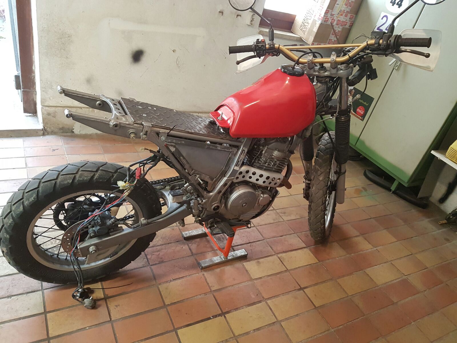 So, nach zwei Wochen Pause und Enduro Rennen in Tschechien konnte ich schonmal ein wenig weiterarbeiten. Rahmenloop der 100 % ig past angepasst und Heck entsprechend gekürzt. Teile des abgeschnittenen Hecks konnte ich somit an den unteren Loop schweissen. Der Loop selber ist steckbar gestaltet mit eingeschweisstem Innenrohr und kann mit den Laschen dann am Rahmen verschraubt warden. So will es der Tüv. Heute ist auch die neue Vorderradfelge in 18 Zoll x 2.5 Zoll Breite angekommen (mit meiner originalen NX650 Nabe). Also am Wochenende werden dann Reifen montiert (Heidenau K60 Scout) und Felgen montiert. Darüberhinaus werde ich schonmal anfangen die Sitzbank in meine Form zu sägen damit ich dem Sattler was arbeit geben kann. Bilder folgen. Gruss Baker