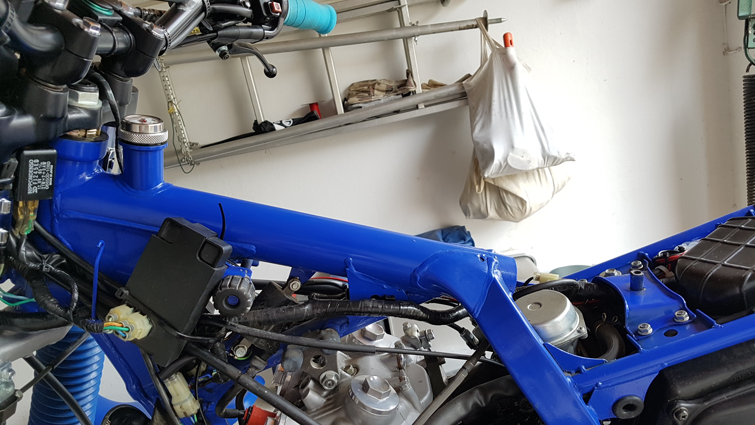 Die CDI habe ich unter den Tank mit Kabelbindern befestigt. Es streift nichts, aber bei Lenker Rechtseinschlag