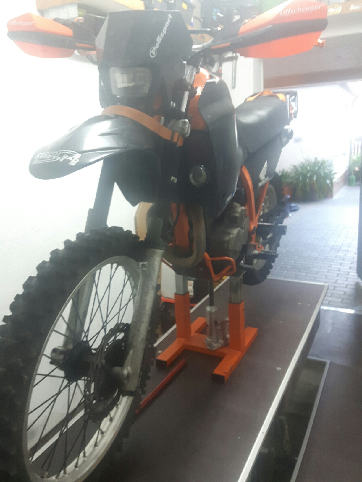 Ich hätte noch ein zerlegtes Cross-Fahrgestell daheim, dass könnte man sich ja dann für ein späteres Mal vornehmen. Aber ganz ohne Zulassung wird man da wohl nicht mitmachen dürfen. Außerdem bräuchte ich da erst mal einen passenden Motor. .....ob da wohl statt dem KTM-2-Takter ein 135PS starker CBR1000F-Motor reingeht???? :mrgreen: