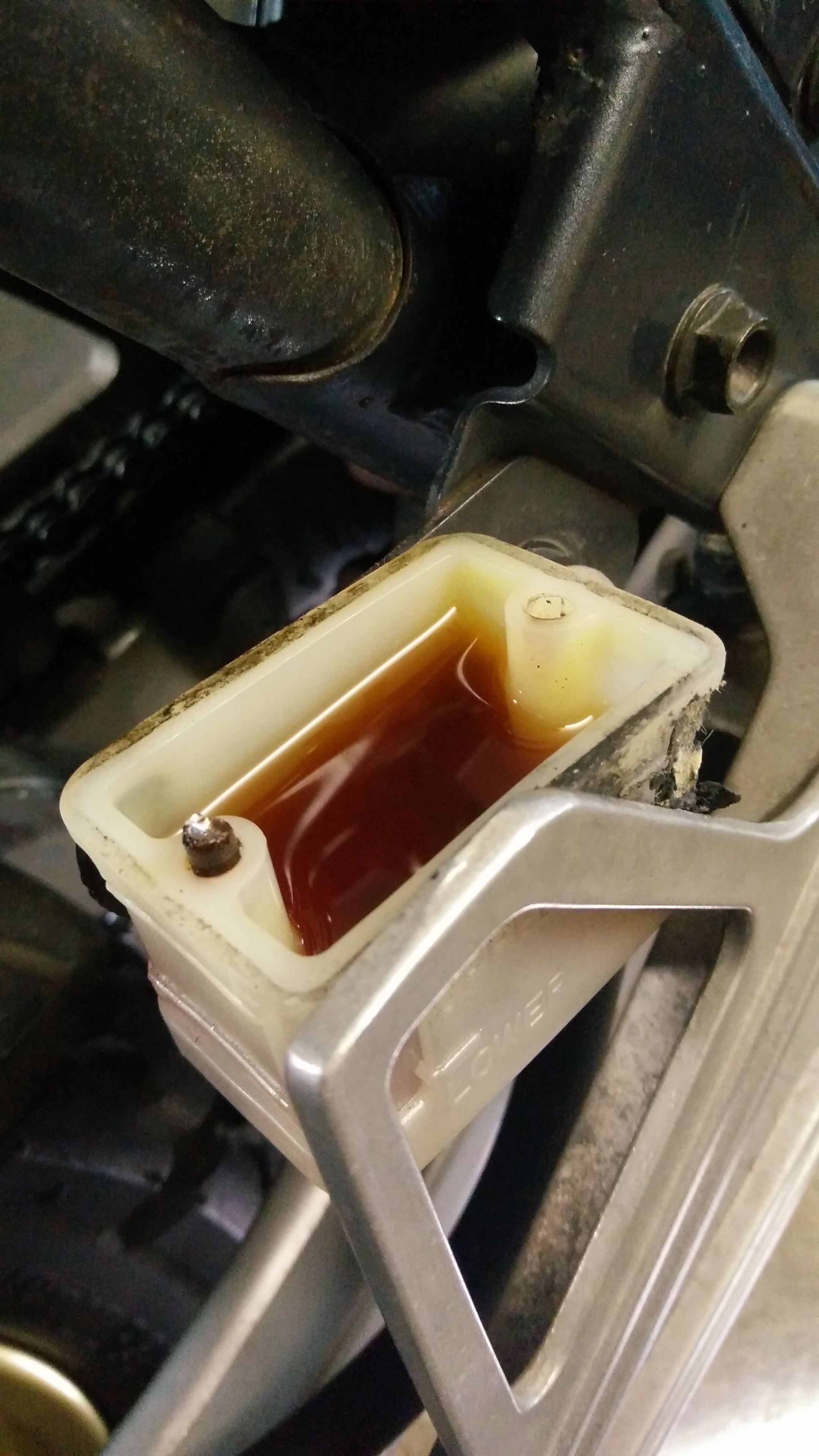Wollte gestern noch die Bremsflüssigkeit hinten wechseln... wäre alles schnell über die Bühne gegangen, ja wäre, wenn nicht eine Schraube am Ausgleichsbehälter total rostig gewesen wäre.