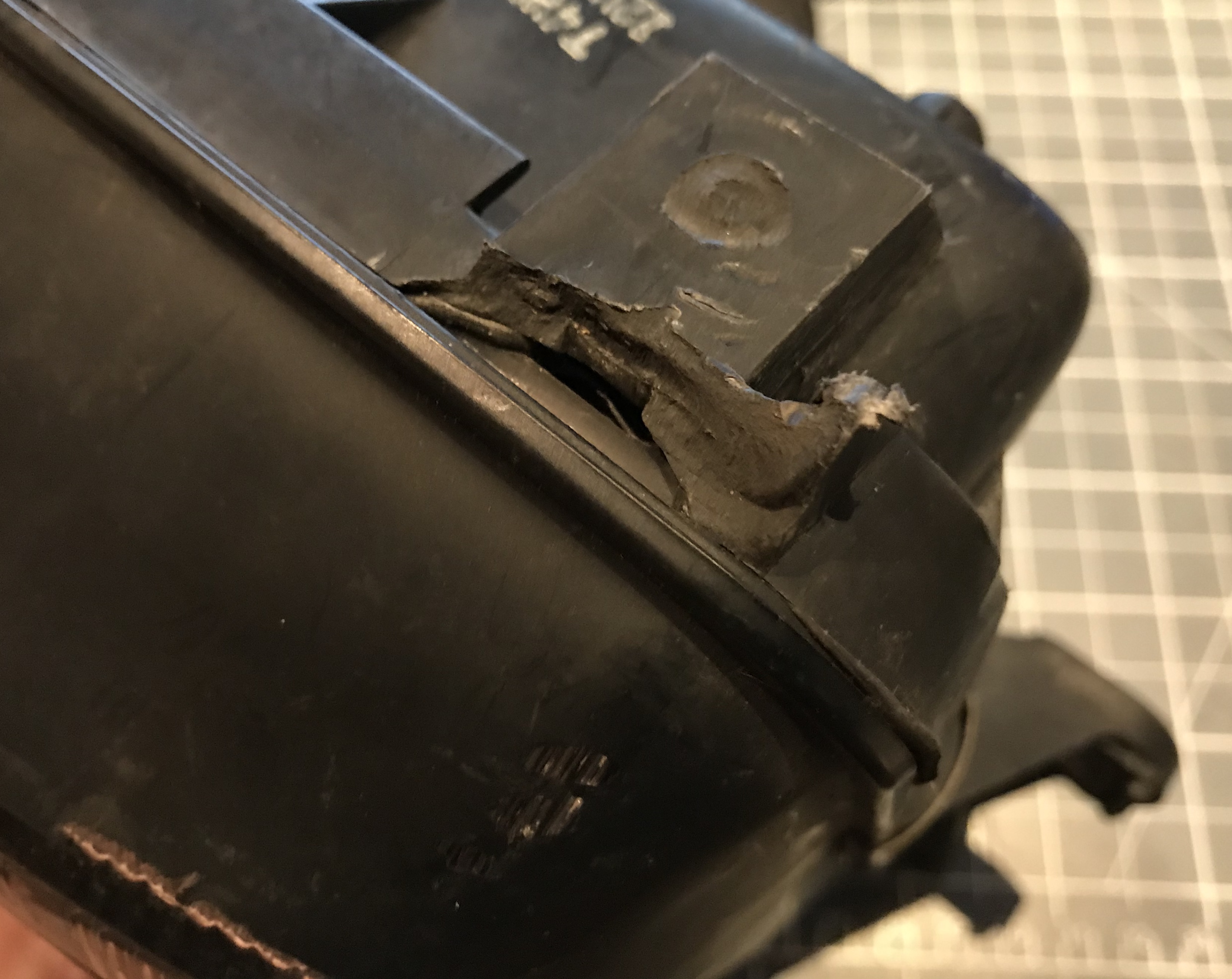 Ich habe hier einen Scheinwerfer liegen, bei dem ist die Halterung an der unteren rechten Ecke abgebrochen. Da sollte eigentlich ein Gewinde vorhanden sein. Aber der komplette "Zapfen" aus Kunststoff ist abgebrochen.