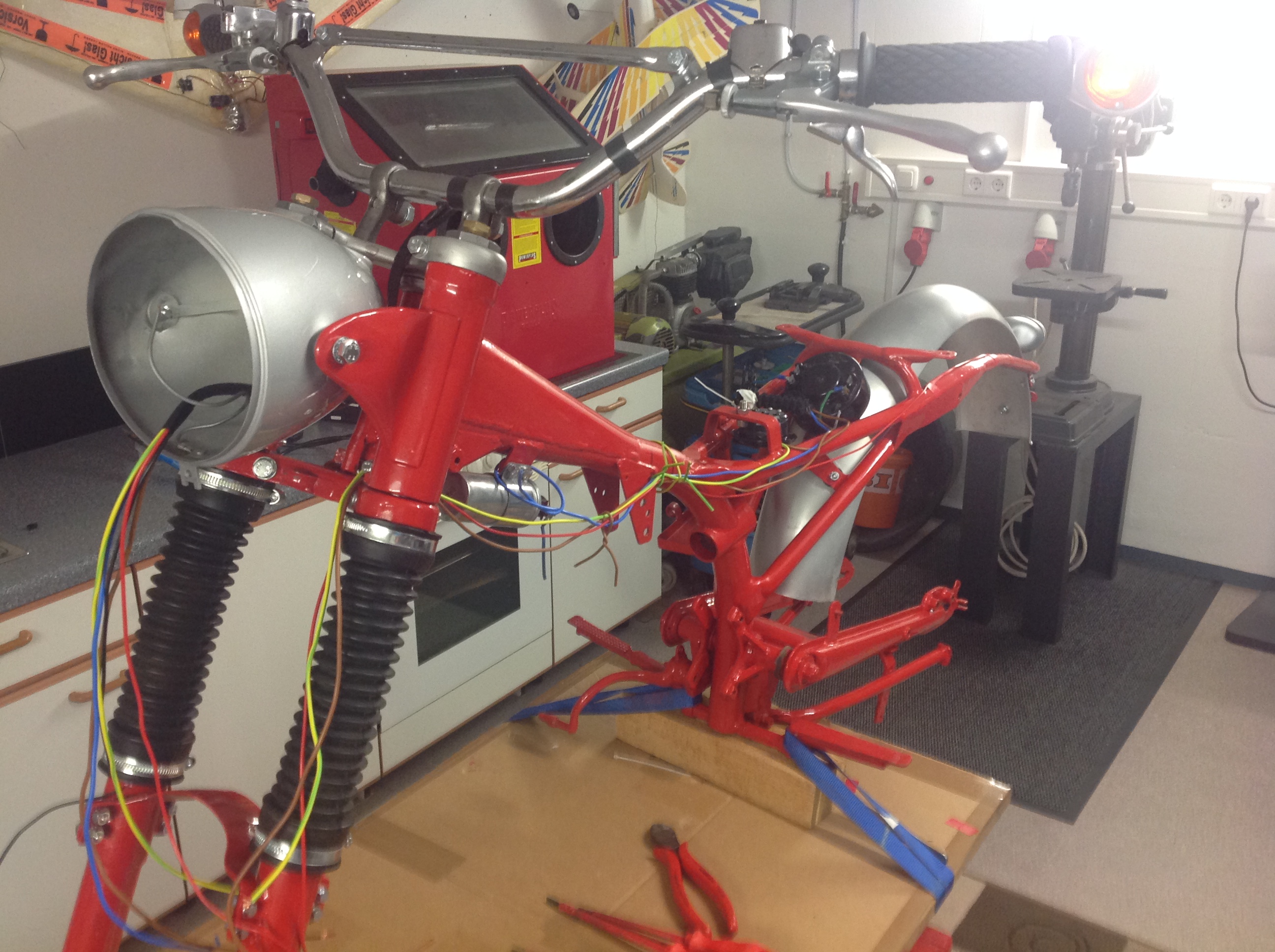 Nachdem die Lenkerschalter restauriert, Lenkerverkabelung und Blinker vertüddelt sind,