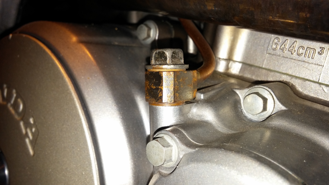 Zur Kontrolle des Öldrucks habe ich mir so einen Druckschalter an den unteren Anschluß der Steigleitung angebaut.