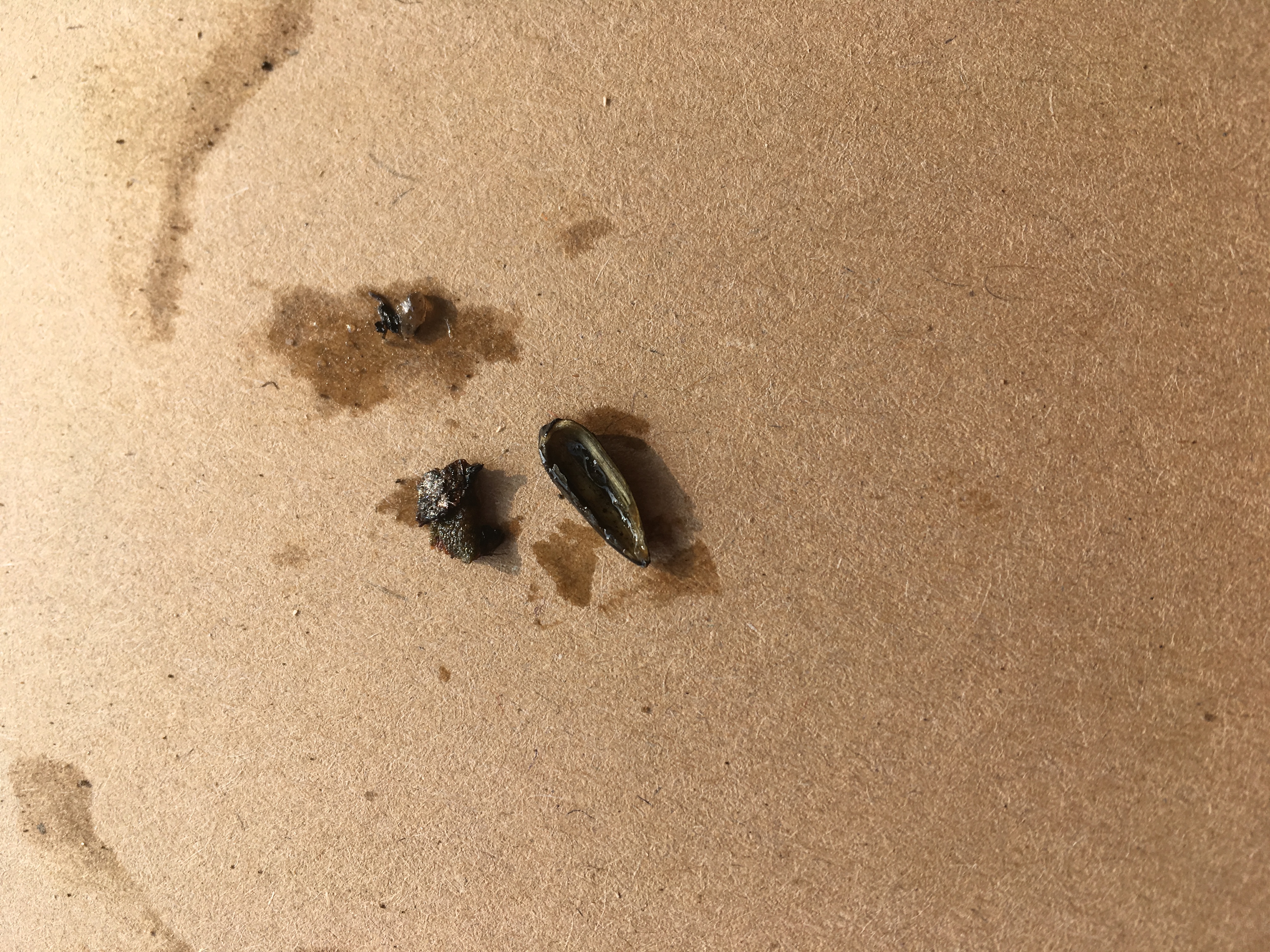 Sieht aus wie eine Schale von einem Sonnenblumenkern und das andere wie Dreck.