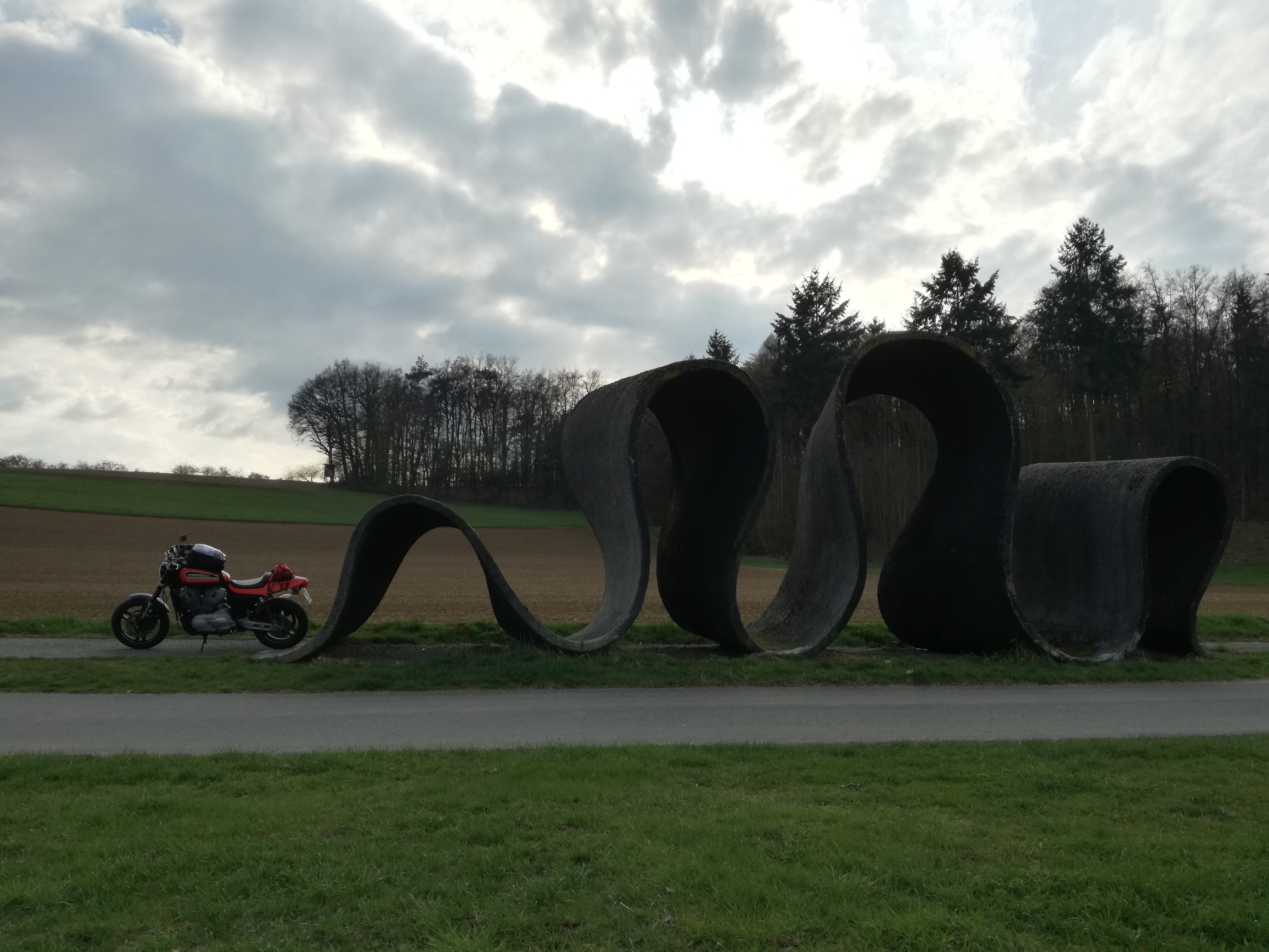 Irgendwo auf der Anreise kurz vor Möckmühl. Handy sagt "Ravenstein". Am Wegesrand befanden sich einige "Kunstwerke"