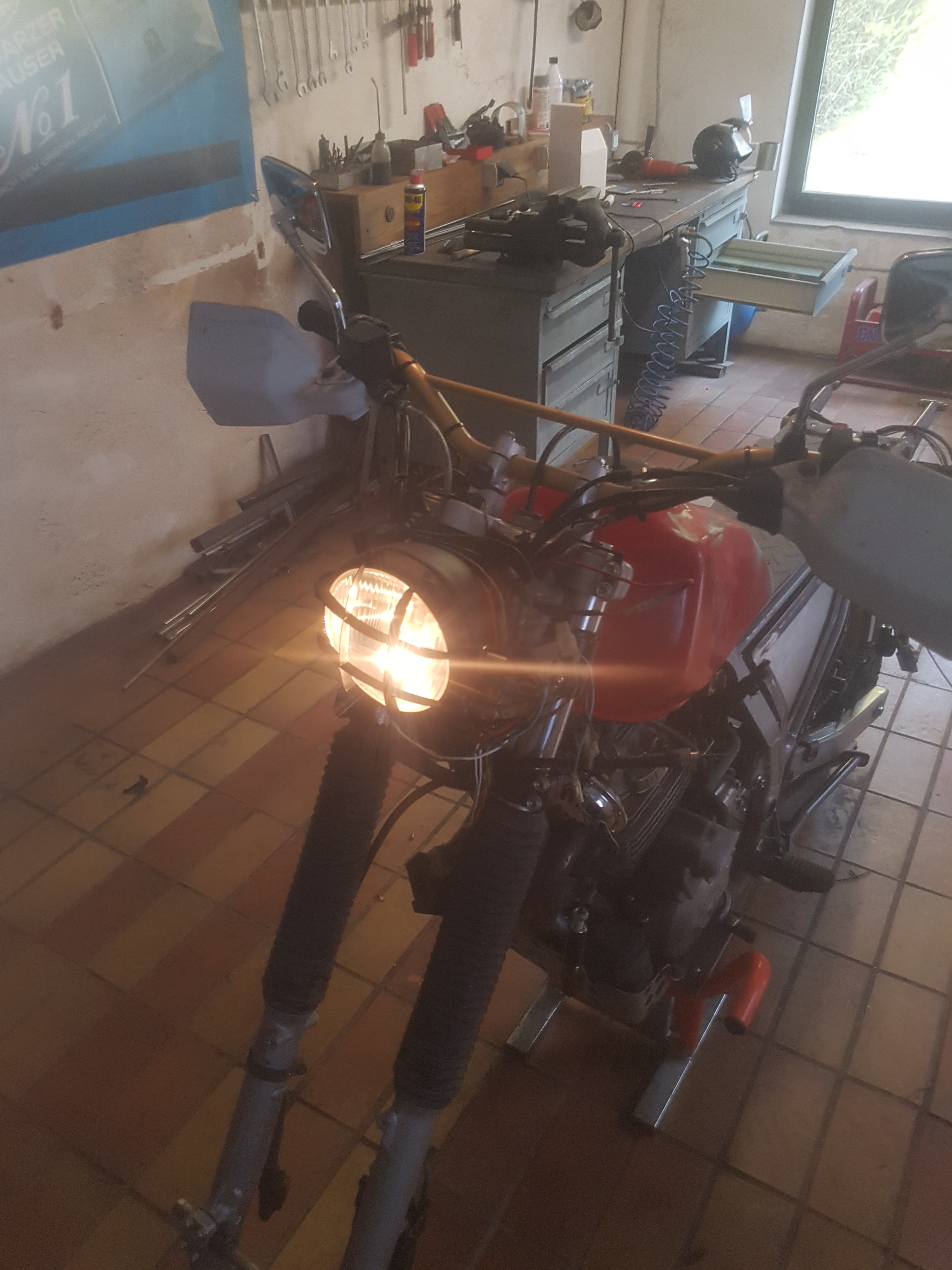 So, nach zwei Wochen Pause und Enduro Rennen in Tschechien konnte ich schonmal ein wenig weiterarbeiten. Rahmenloop der 100 % ig past angepasst und Heck entsprechend gekürzt. Teile des abgeschnittenen Hecks konnte ich somit an den unteren Loop schweissen. Der Loop selber ist steckbar gestaltet mit eingeschweisstem Innenrohr und kann mit den Laschen dann am Rahmen verschraubt warden. So will es der Tüv. Heute ist auch die neue Vorderradfelge in 18 Zoll x 2.5 Zoll Breite angekommen (mit meiner originalen NX650 Nabe). Also am Wochenende werden dann Reifen montiert (Heidenau K60 Scout) und Felgen montiert. Darüberhinaus werde ich schonmal anfangen die Sitzbank in meine Form zu sägen damit ich dem Sattler was arbeit geben kann. Bilder folgen. Gruss Baker