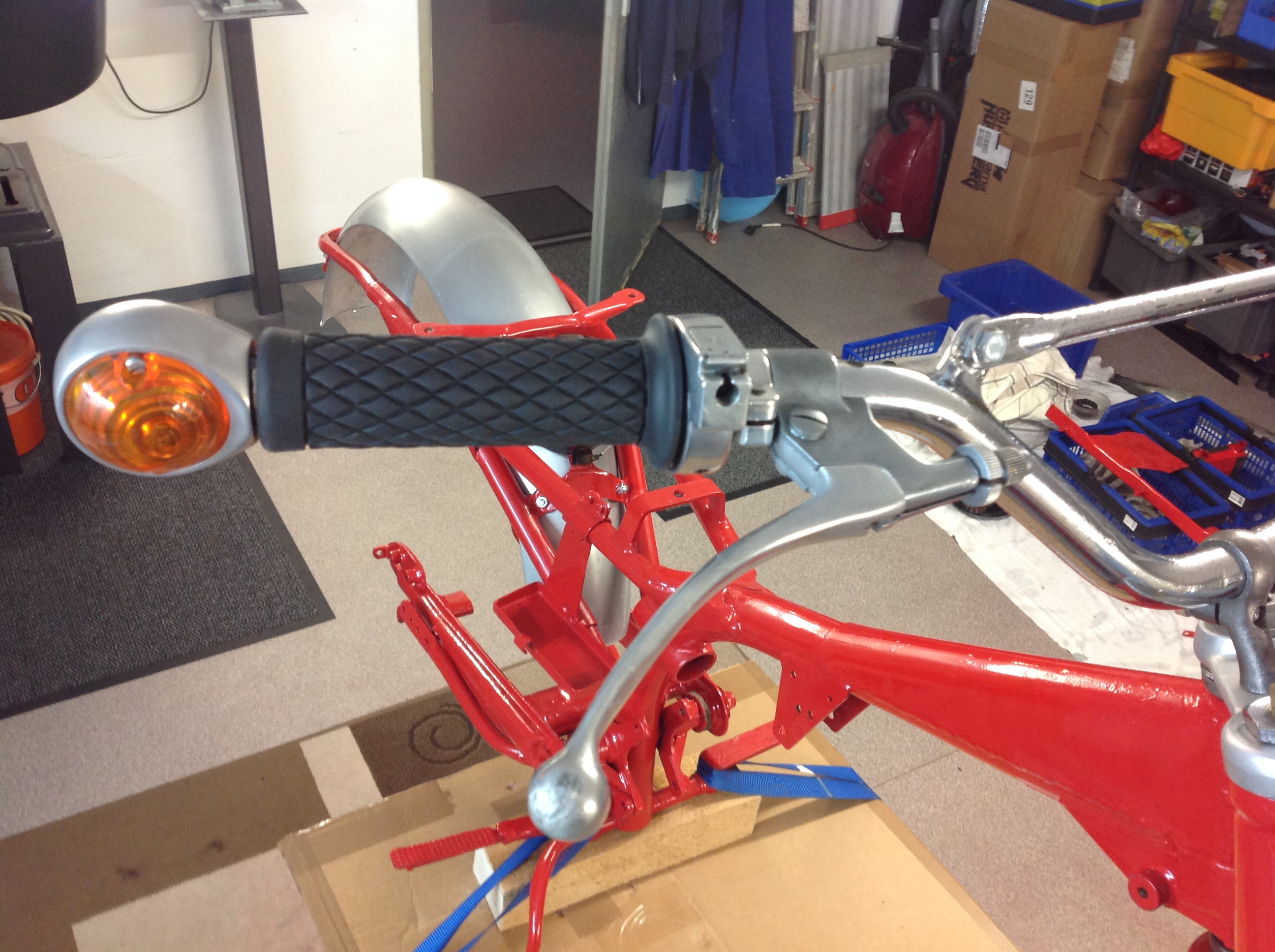 Nachdem die Lenkerschalter restauriert, Lenkerverkabelung und Blinker vertüddelt sind,