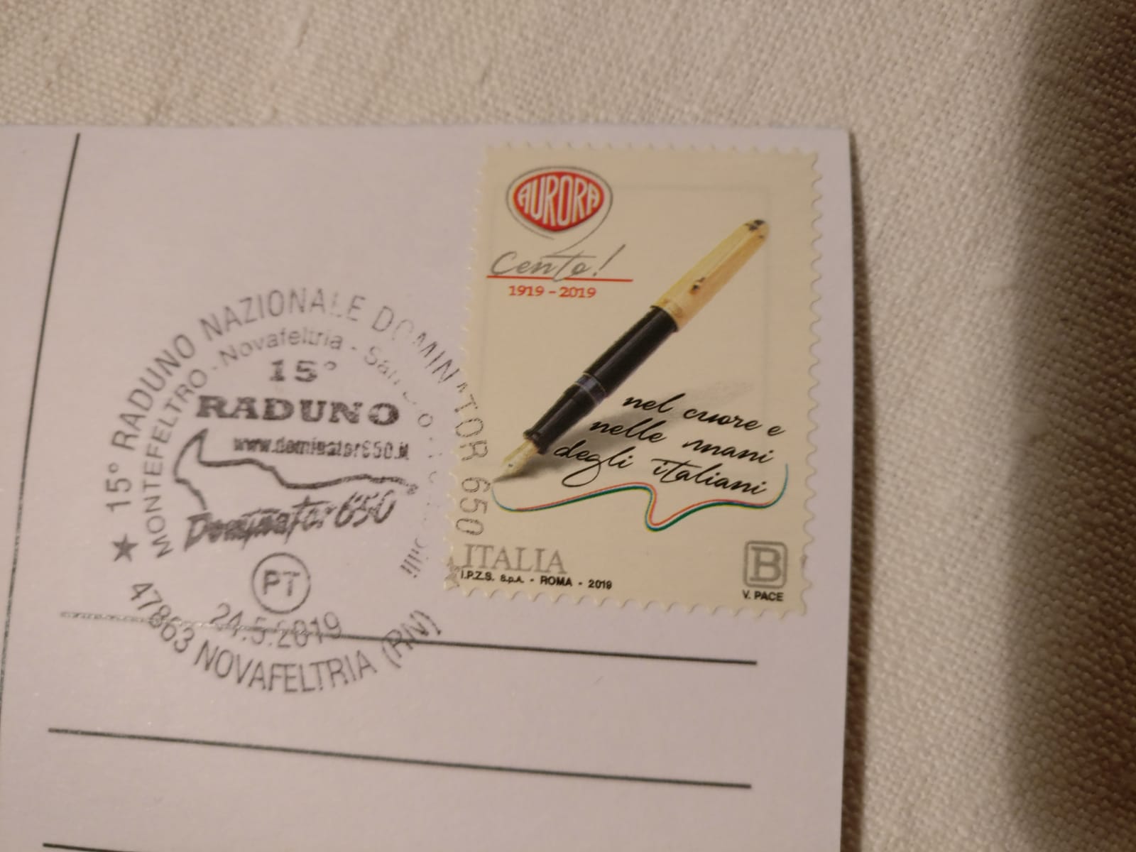 EINE SPEZIELLE GEDENKPOSTKARTE. In Zusammenarbeit mit Poste Italiane wurde unter den Arkaden der Gemeinde Novafeltria ein zweiter Stand für die Zustellung von Souvenirpostkarten der Exkursion eingerichtet, die mit einer Briefmarke mit der Aufschrift "Fünfzehntes Nationales Treffen des Dominators 650" versehen waren. Ab dem 21. Tag nach dem 24. Mai können die Sammler die Poststornierung beantragen. (R. G.)