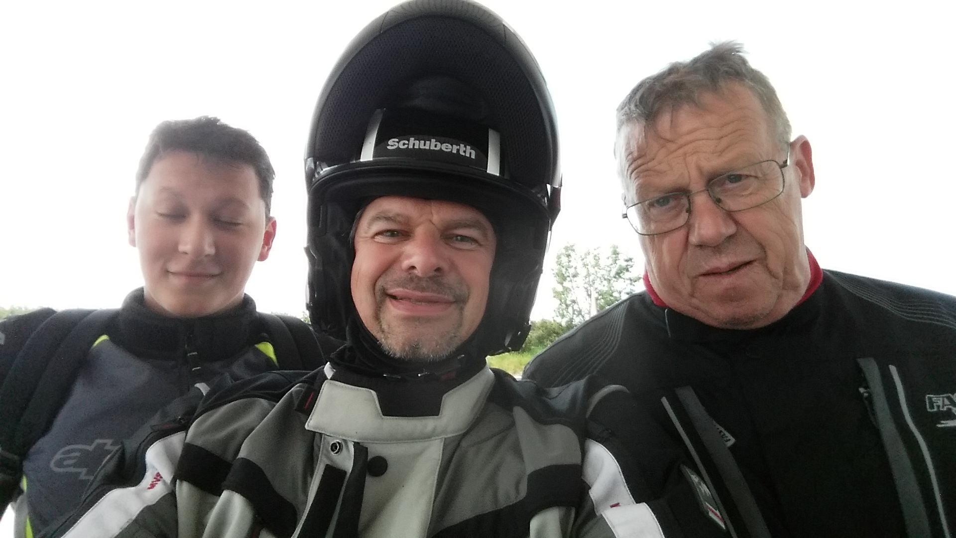 Nach einer Übernachtung dort mit großen Schwierigkeiten, mit dem Gespann auf den Hotelparkplatz zu kommen, haben wir uns dann mit Nicola4u getroffen und das Volvo und Anhänger in seines Nachbarn Garten stehengelassen. Das Wetter war grau und nieselig.