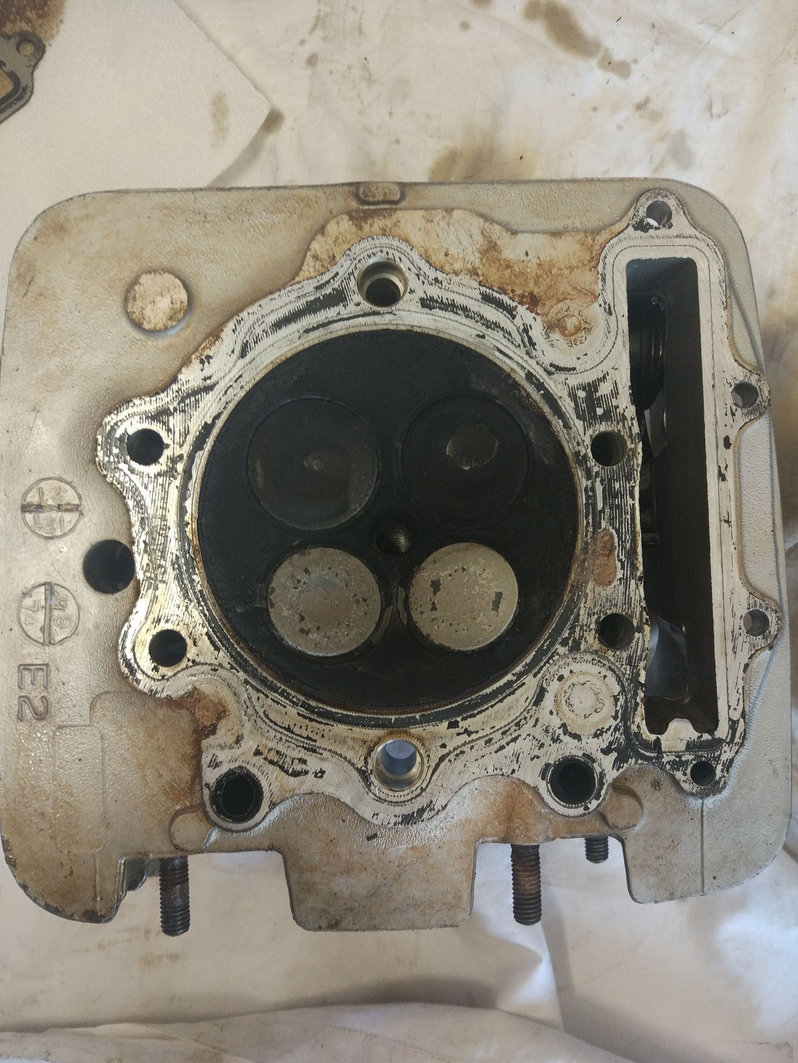 Auf den ersten Blick keine Risse am Kopf erkennbar, was sagt ihr? Im Zylinder hab ich aber das gefunden, Einlassseite: