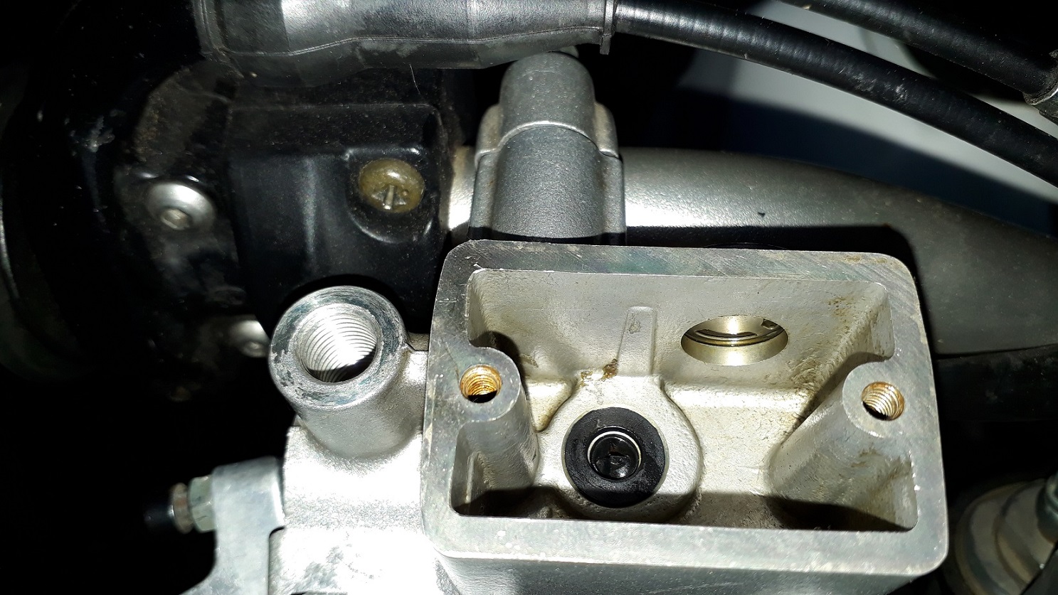Die Bohrung die Raid erwähnt ist die kleinere (linke im Bild) - ich säubere diese Bohrung immer mit einer 'Düsen-Reibahle' - allerdings anschließend die Laufbahn des Bremskolben entgraten (!)