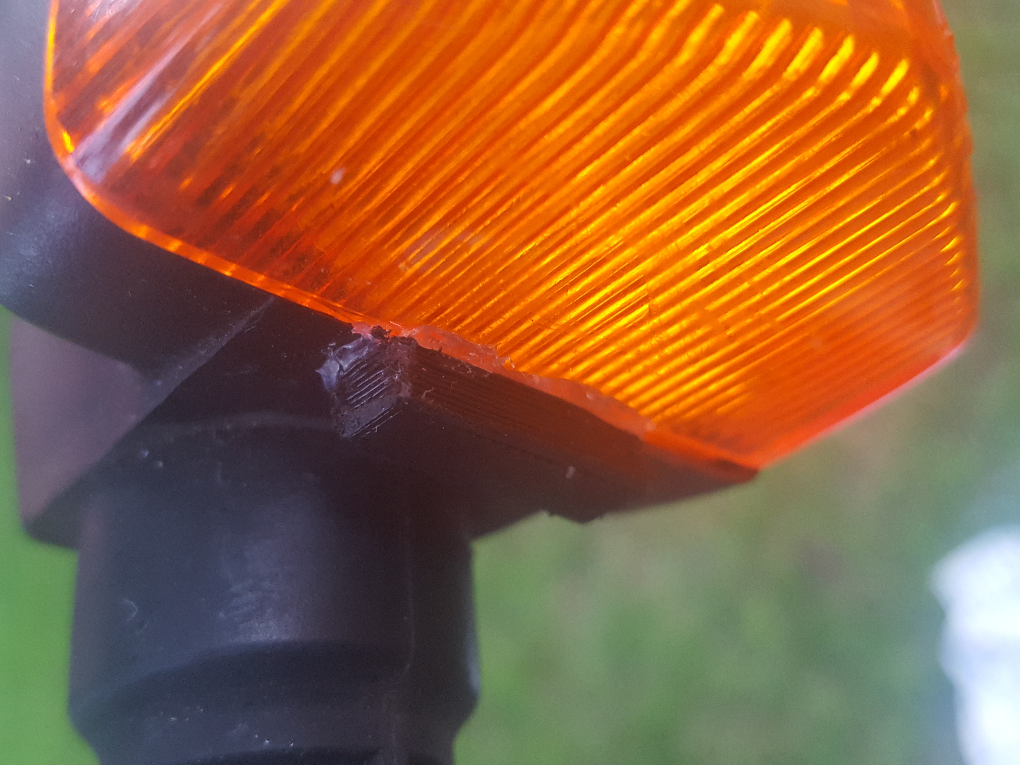 Mir sind die Haltebrücken für das Blinker"streuglas" abgebrochen. Die kann man mit 3D-Drucker prima reparieren und bombenfest optimieren. Einfach nur kleines Käppchen draufgeklebt. Siehe Foto. Reicht hoffentlich für TÜV HU.