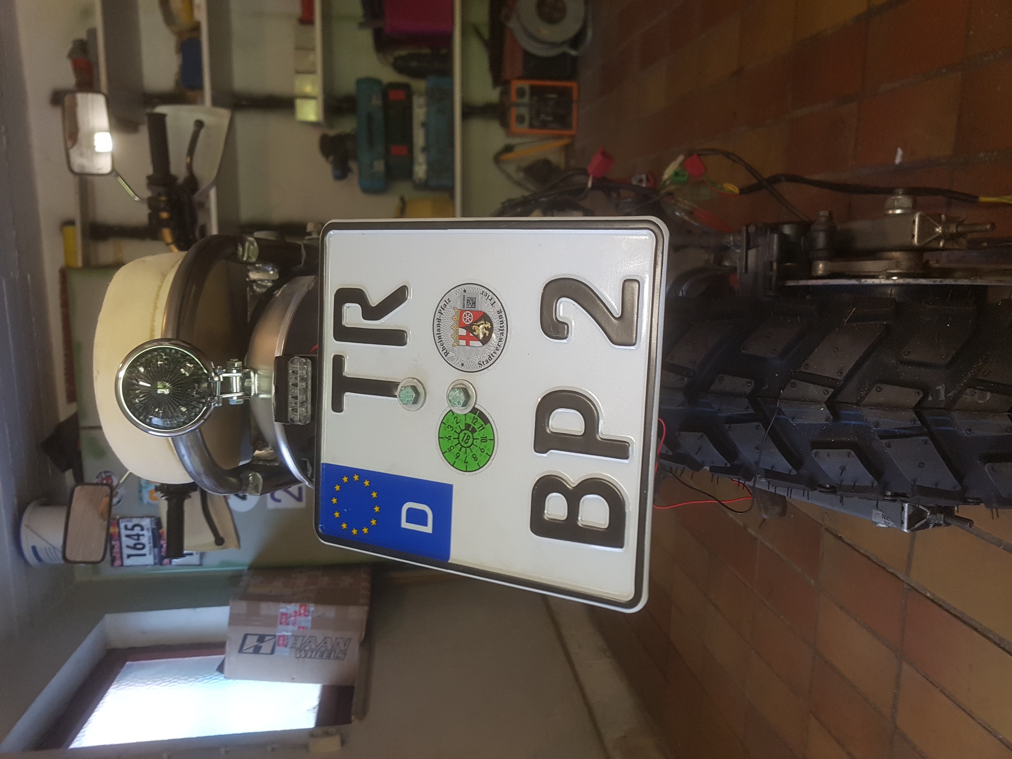Kannst du das Kennzeichen nicht noch bisschen höher setzen. Auf der Seite find ich das ehrlich gesagt auch nicht so toll. Erinnert mich irgendwie an die 16jährige Rollerfahrer.